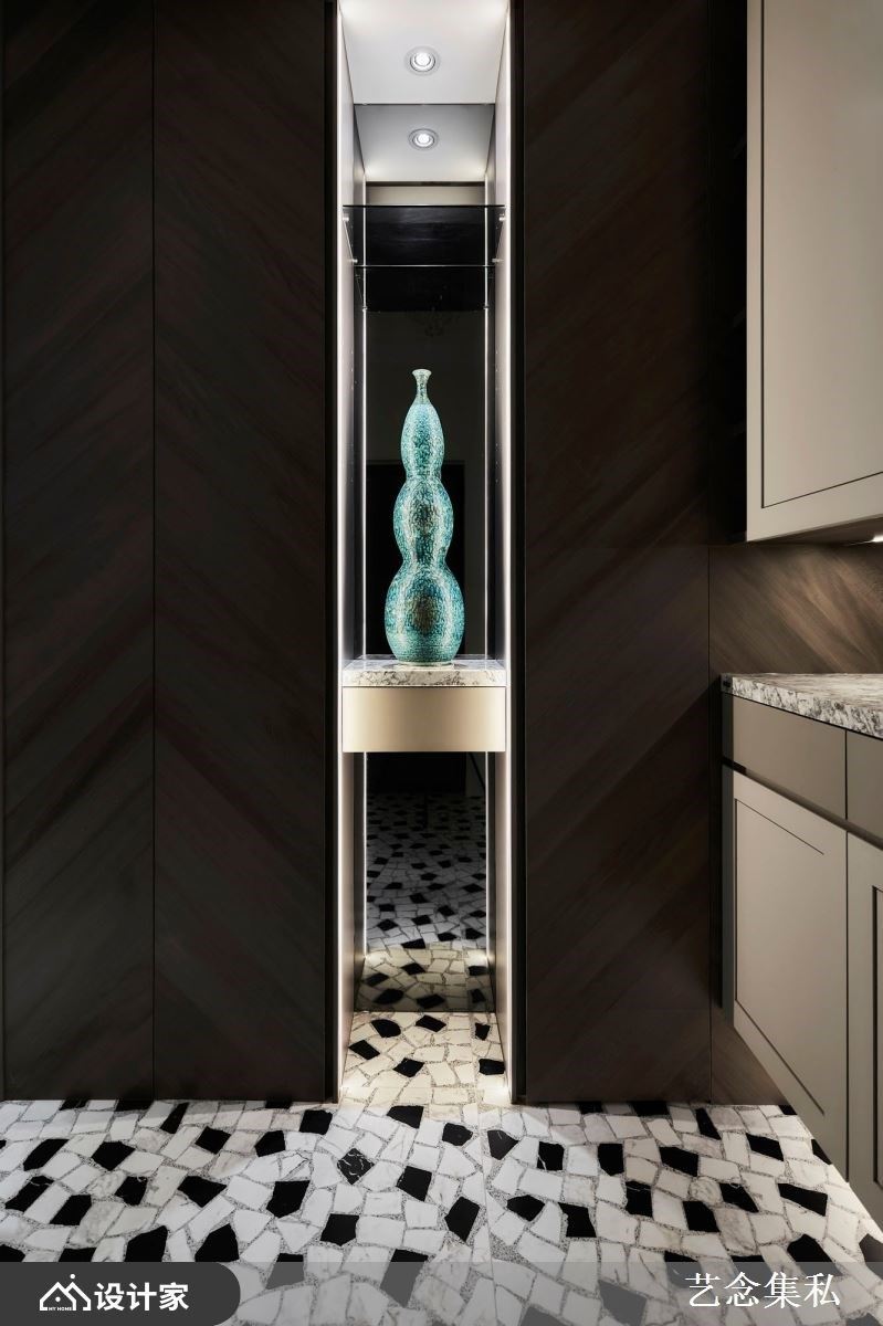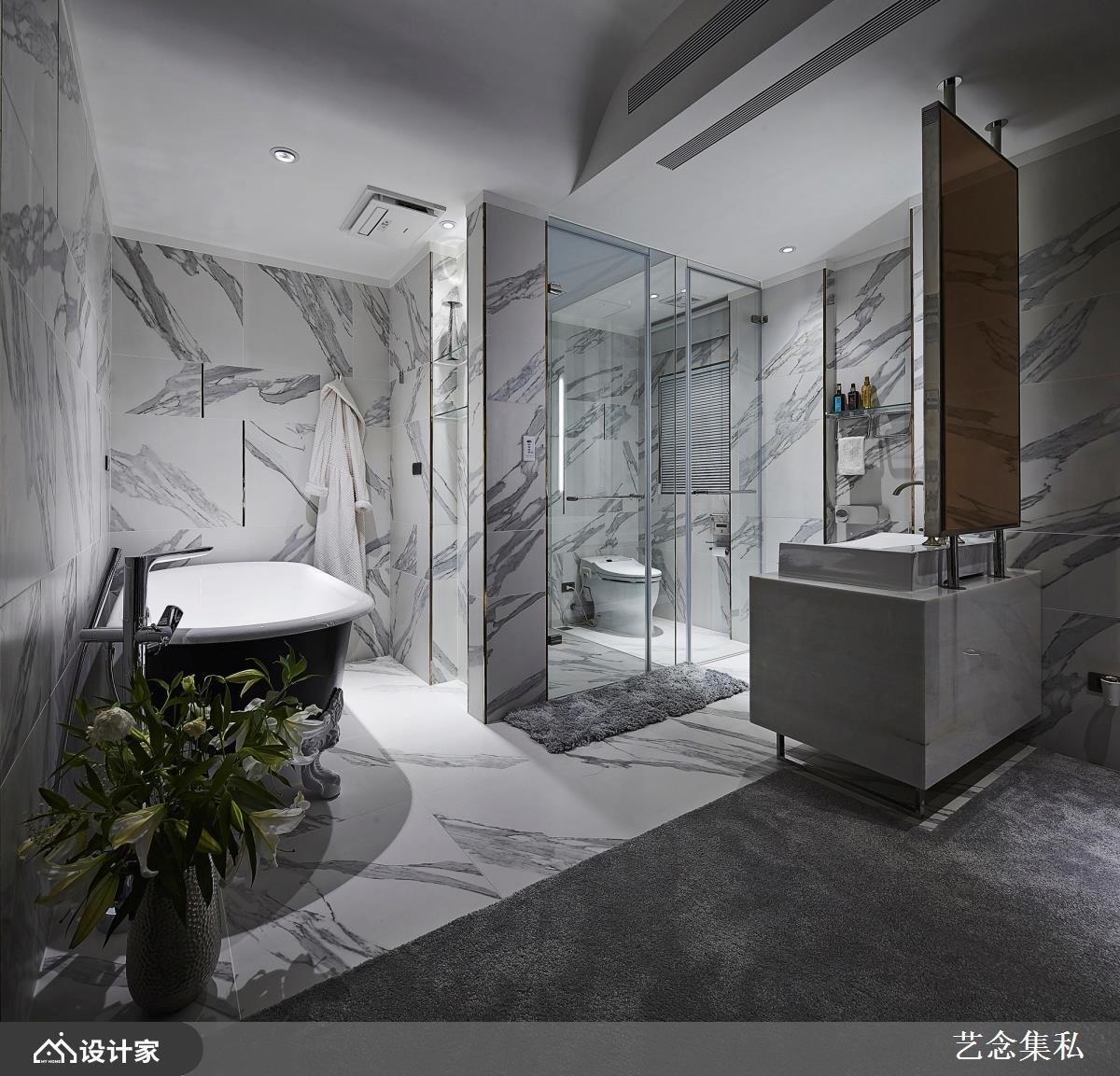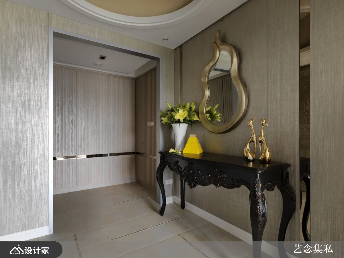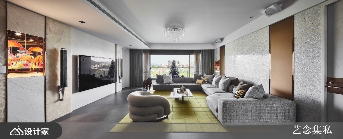 要营造有如五星级酒店的奢华空间,但又必须保有住宅的温暖氛围,不会过于有距离感,艺念集私空间设计张绍华、黄千祝总监会将大理石、镀钛金属和实木等作为空间主角,营造大气的玄关迎宾区、客厅电视墙或厨房中岛,但在住宅内的墙面或门片,则会挑选屋主喜爱的风格墙纸,或利用壁画的方式丰富墙面,在奢华感之中增添一些个人风格。寝居空间或卫浴中透过镜面、玻璃和灯饰来呈现高贵的气质,但辅以不同的色彩替空间定调,创造出华贵却不带距离的住宅设计。