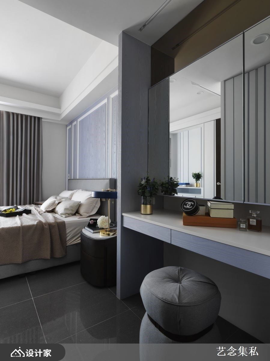 卧室空间除了要安排一张舒适的床铺之外,对于许多女性来说化妆台更是私密空间里最重要的角落。艺念集私空间设计张绍华、黄千祝总监面对女性在意的化妆台设计绝不是只放置一张活动桌而已,而是根据房内空间和屋主使用习惯做安排。将梳妆空间安排在通往独立更衣间的入口,营造顺手的动线、也避免化妆镜对着床铺;两个女孩的房间在床尾两侧分别规划化妆台,壁龛式设计能有效利用空间;若面对比较小坪数的空间则可将梳妆台和系统柜整合在一起,化妆台的灯饰与色调也必须和空间风格呼应,用美的设计成就爱美的女性。