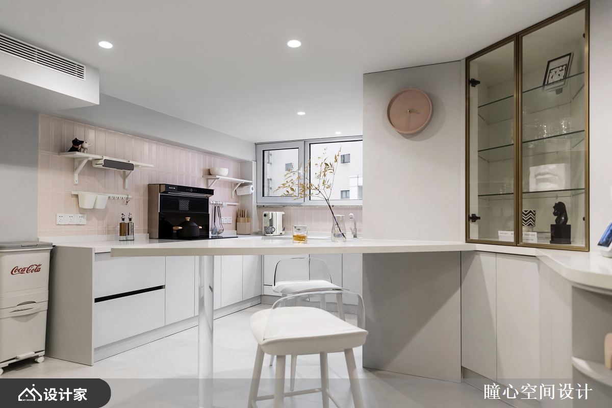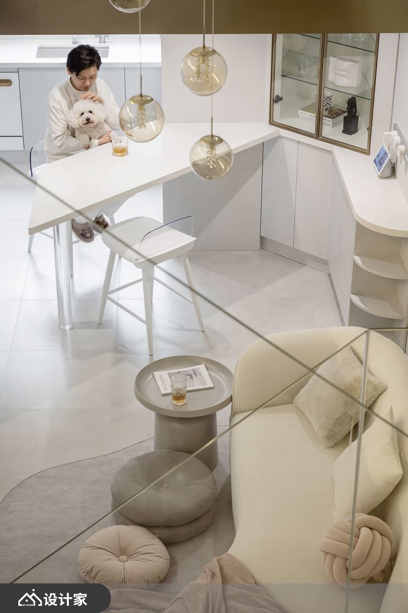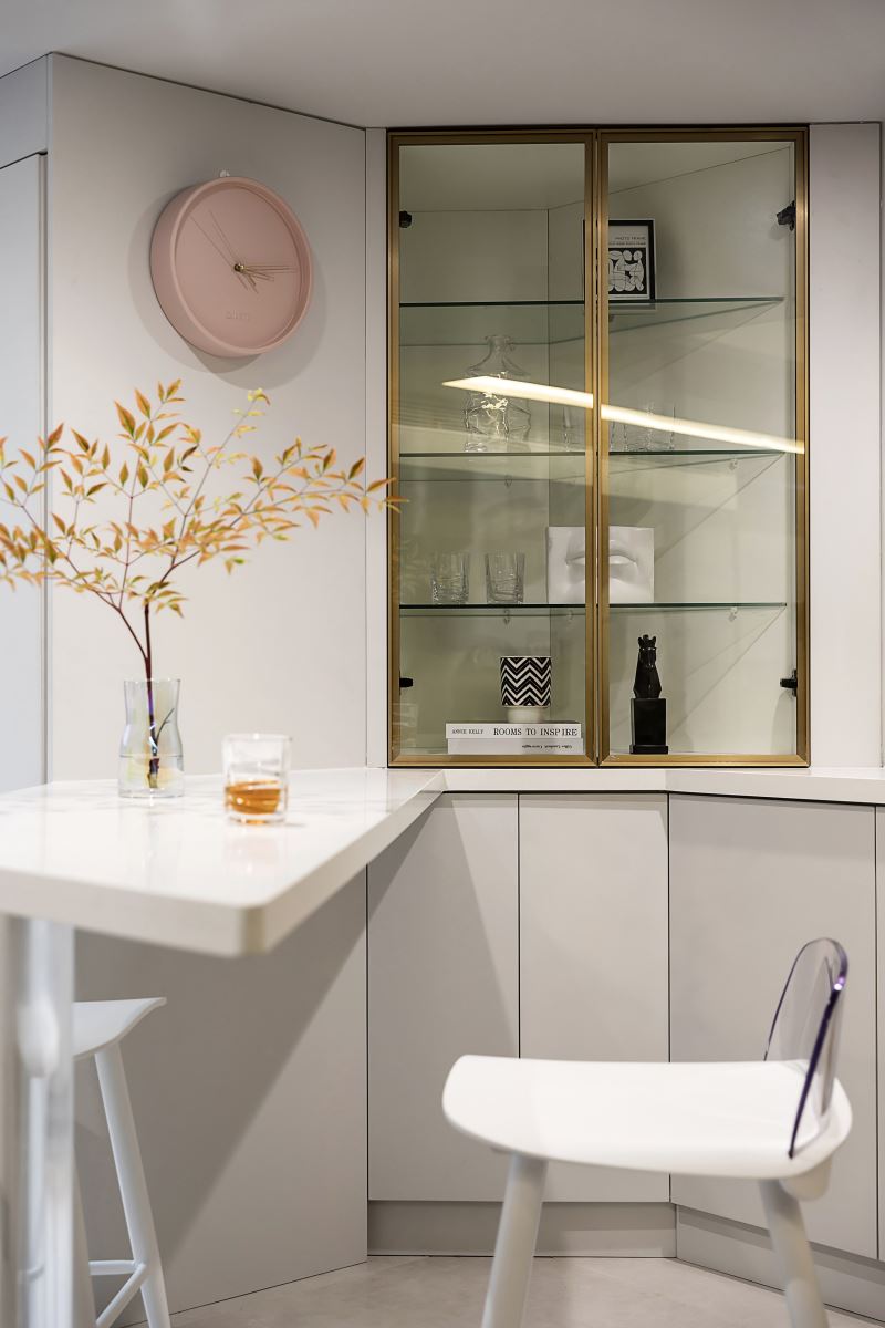 吧台与餐桌的相结合的方式方便使用又节省空间,使得小空间氛围感也更好。