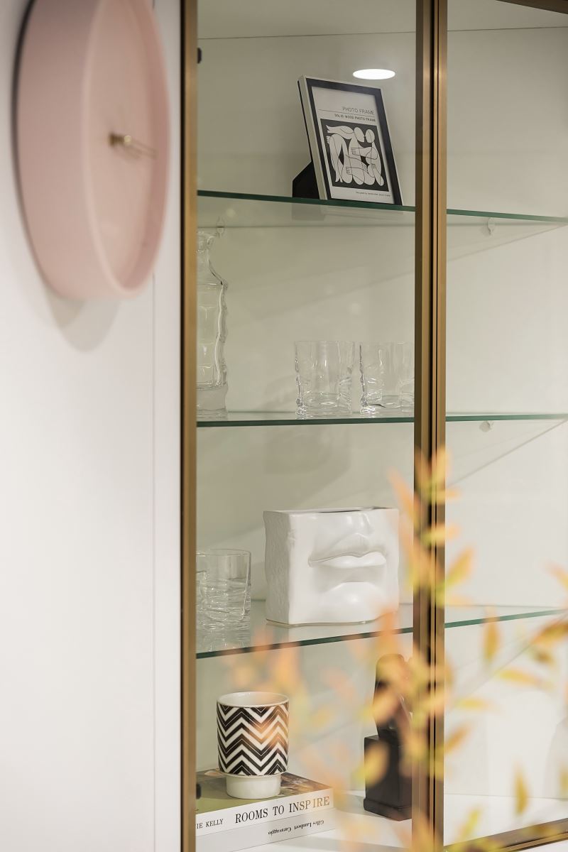 每天的奔波忙碌,回到独属于自己的『居心地』,它不需要太大,小小得更有幸福感。屋主长期居住是两个女生+一条粘人的狗,钟爱脏粉色。因此在色彩搭配上上,我们以白色为主,局部点缀脏粉色,再配金色线条,营造一个梦幻又小女生的居心公寓家。
