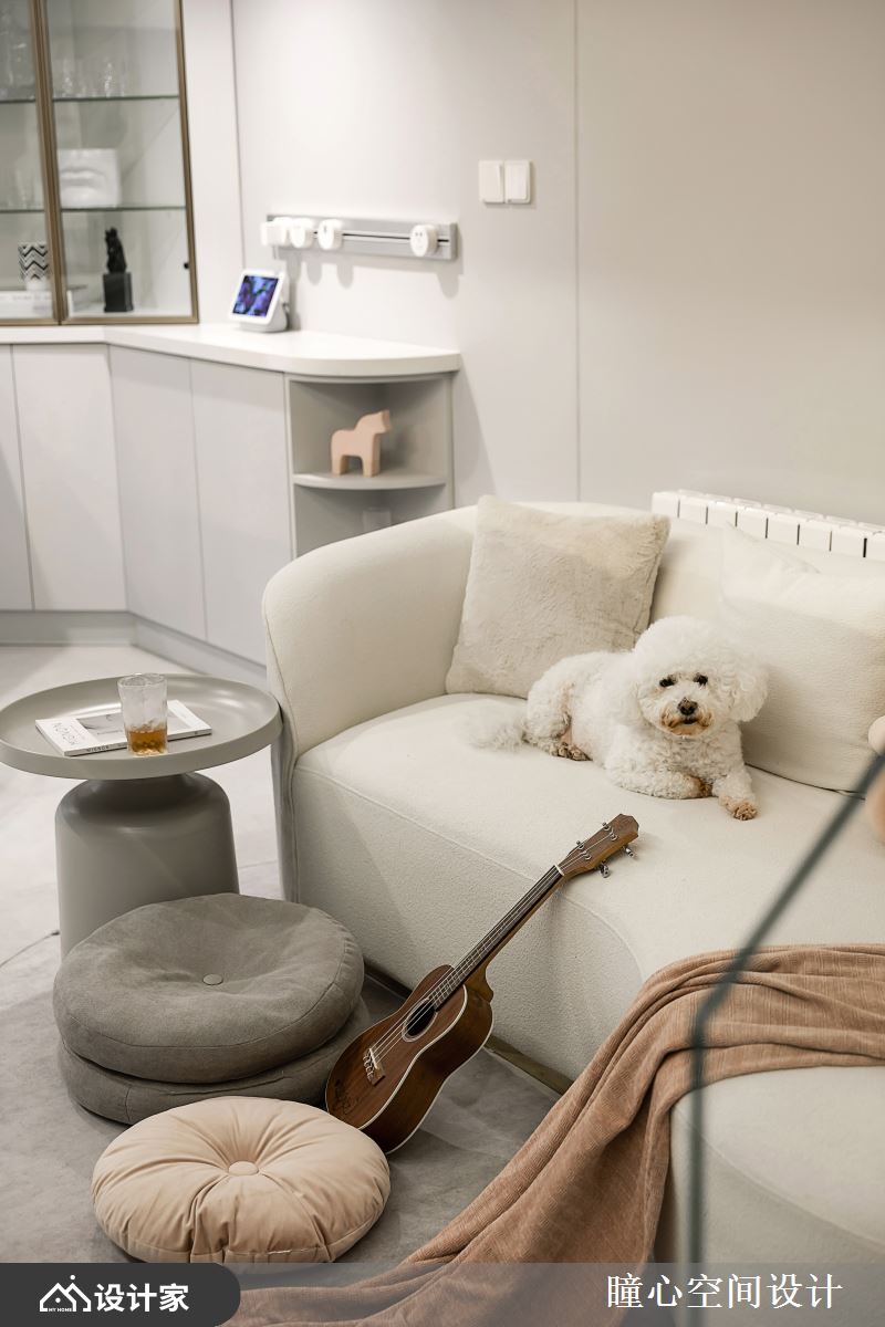对于屋主而言,家,是一个让她绝对放松的场所。在这里,她可以跟朋友可以一起跳舞,一起弹尤克里里,一起逗逗粘人的狗子,一起聊天,度过每一天的美好。