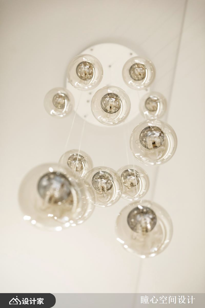 挑空客厅上方的泡泡灯,吸引了全部视觉焦点,增加了青春活力,给屋主营造一个梦幻的感觉。