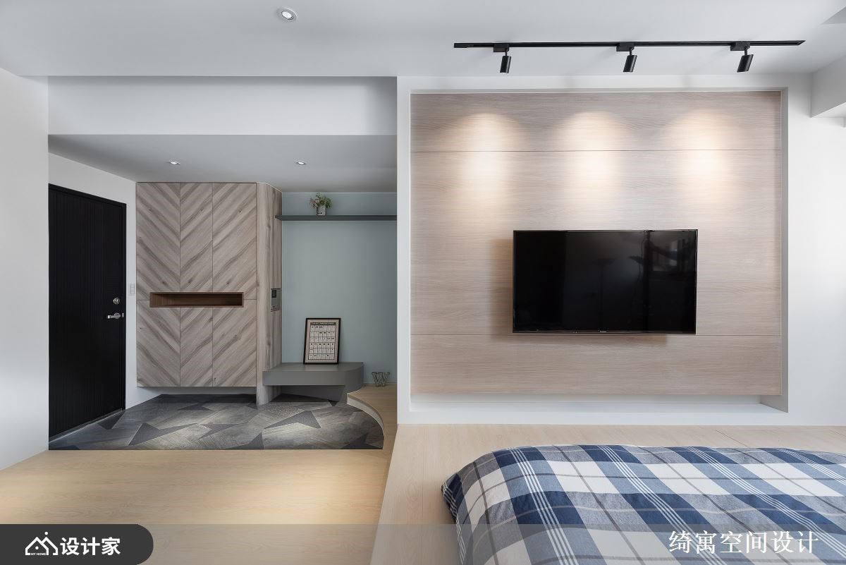 床头背后是超大型的收纳柜,屋主的各种衣物和零碎物品都有了去处。