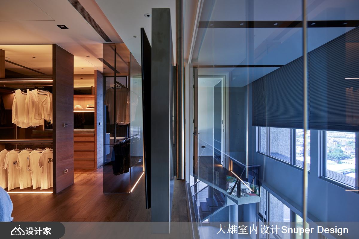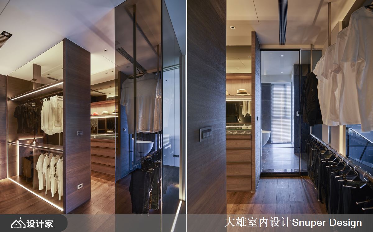 更衣区域采用,素净清雅的玻璃材质,透过光源的照射,展现精品摩登的氛围,同时令阳光满室流转、更显通透明亮。