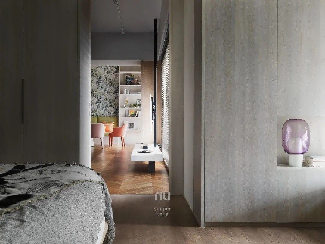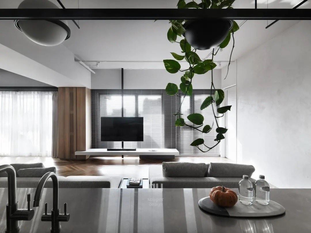 生活的习惯决定了空间的样态,149 平米的现代风亲子宅以家人间的热络互动,作为格局动线的设计主轴,并挹注不同的色彩于各个空间领域,使室内充满绿意盎然与充沛采光,细腻营造亲切宜人的自然感居家。