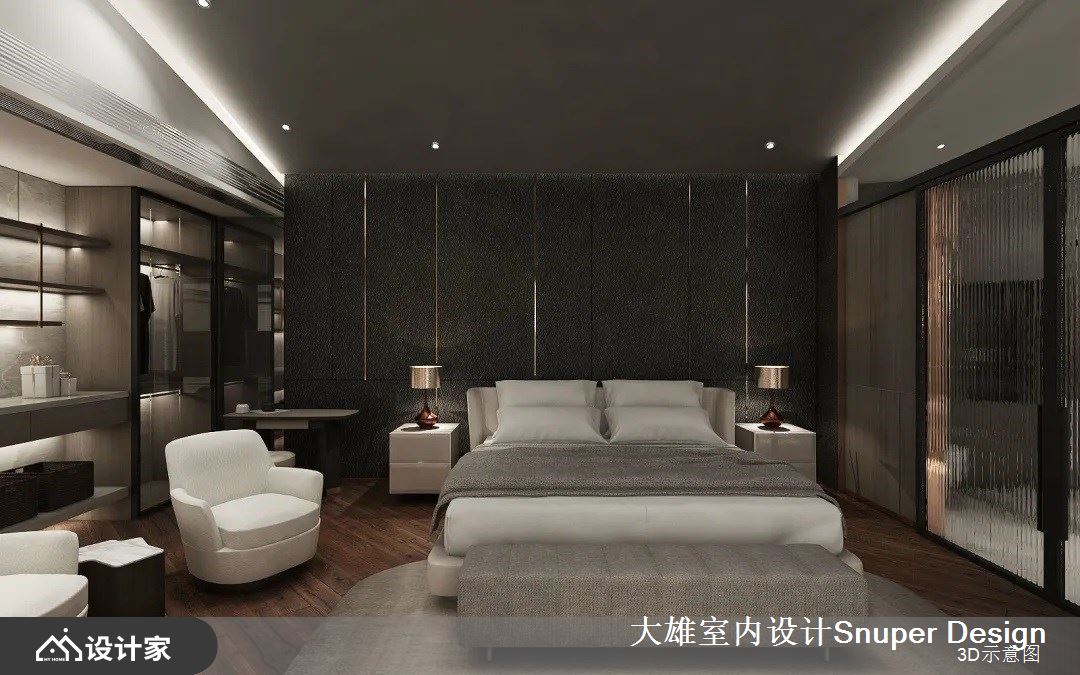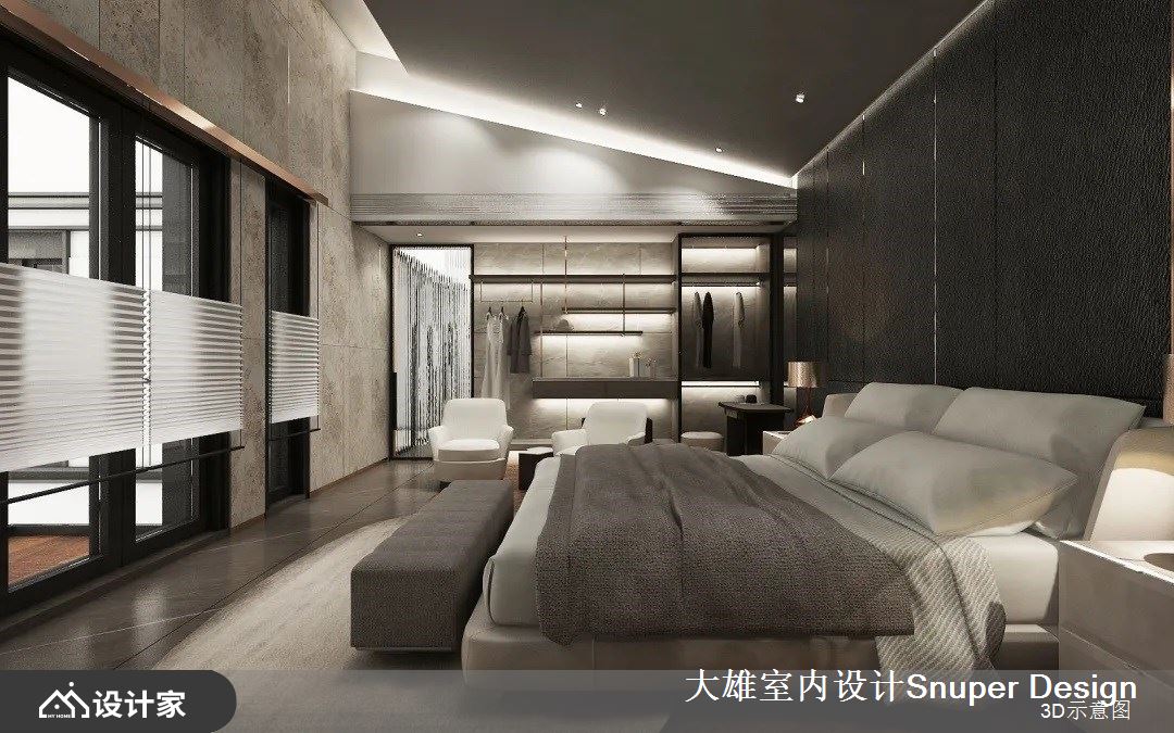 二层是最私隐的主卧室具备更衣室与 SPA 房等机能。