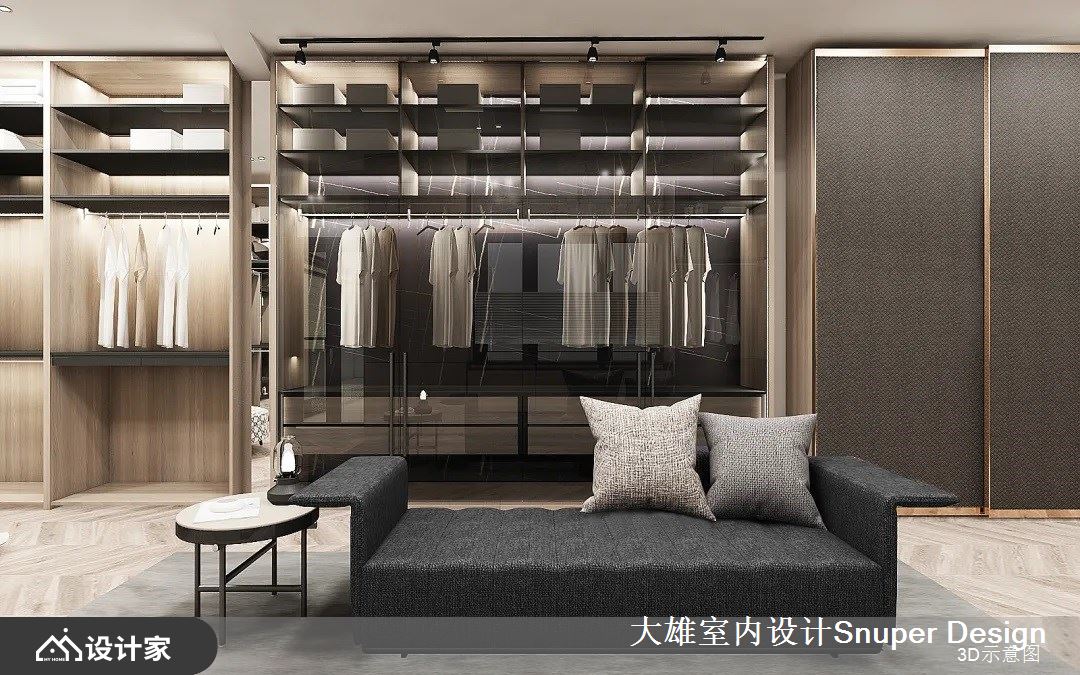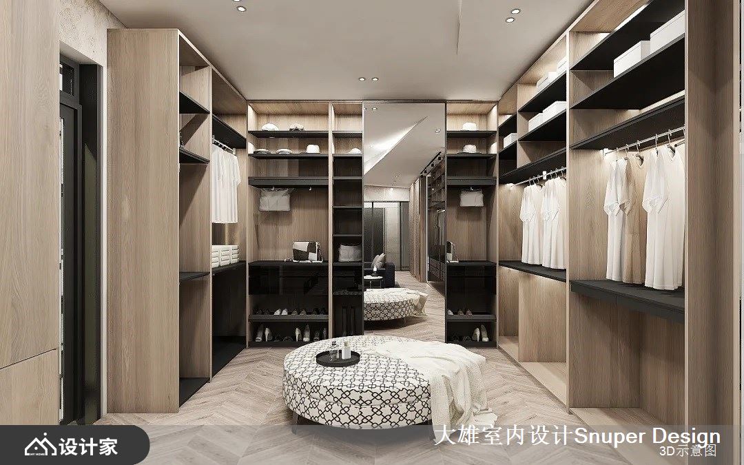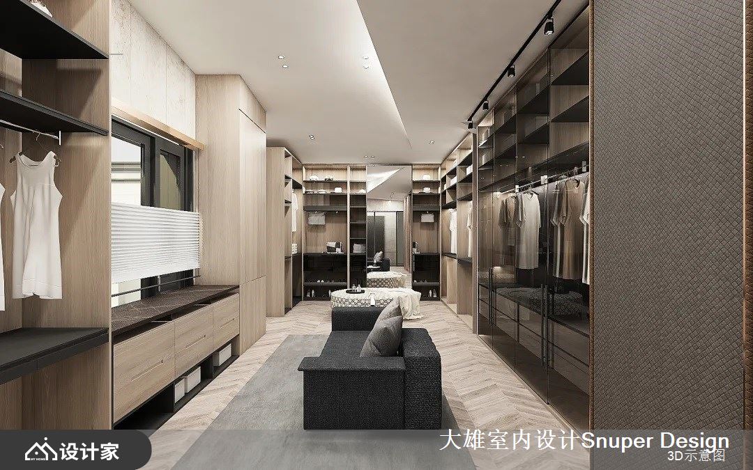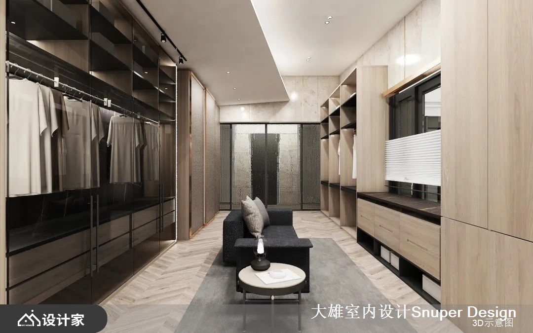 更衣室区域机能完善,不仅具备精品旗舰店般的展示收纳效果,更拥有充足的机能性,另外在宽裕的场域中间,摆放上观赏对外窗景的沙发,让人可观春天的落英缤纷、秋日的梧桐细雨,展现的不只是高质量的设计,更是对生活的精雕细琢。