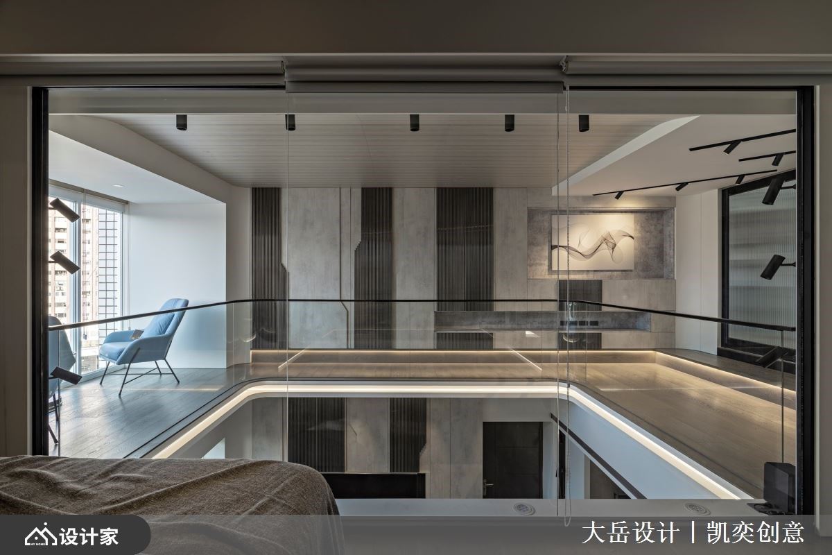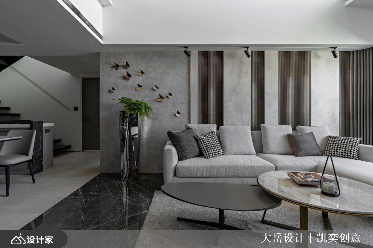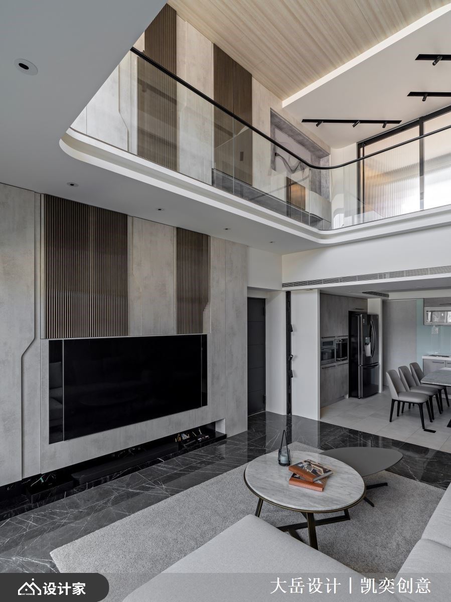 复层老屋改造成人文现代宅,依循挑高建筑体优势,玻璃帷幕引入户外自然光与天际景致,开阔格局延伸客厅尺度,让人一享舒心畅快。 打破制式墙体设计样貌,客厅电视墙结合格栅立面,且延伸至二楼壁面,对面的沙发背墙延伸此元素,达到相互呼应;壁面轻洒晕黄的嵌灯照明,一旁则以蝴蝶造型、绿意植物妆点端景视觉,交织写意、雅致的现代风韵律,叙写生活即艺术。梁下安排餐厨空间,以石材餐桌为核心,石材的自然纹理与朴实灰阶电器柜的立面,创造一股内敛的自然力量。 通往二楼的踏阶与壁面嵌入照明设计,贴心的设计细节让行走的人们更显安心,并持续延伸到二楼的地面运用,替现代风的居家场域注入优雅的情境氛围。二楼设计弧形玻璃帷幕串连主卧、多功能室与观景区,以玻璃作为通透隔间,让自然光流淌一室,展现明亮视野;天花板则以木纹质感呈现,挹注温润的柔美气息。 小编的最爱 主卧在对外的玻璃隔间上搭配窗帘,创造出个人隐私;多功能室藉由渐层的玻璃拉门界定,是小朋友游戏、谈天与亲友到访的休憩处。
