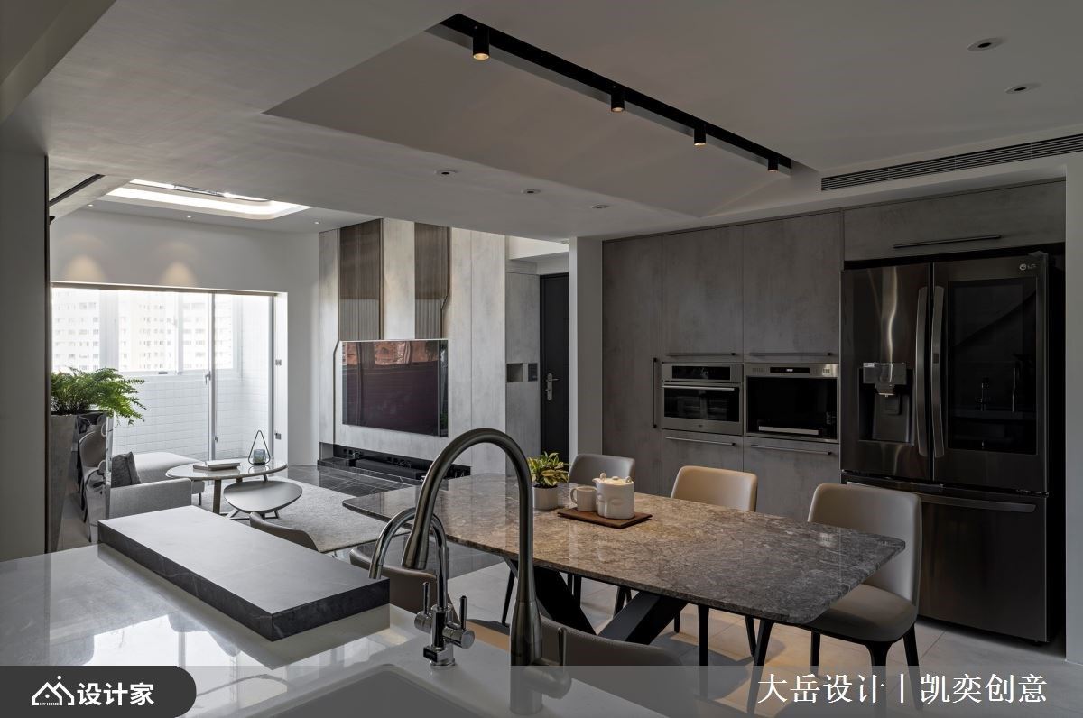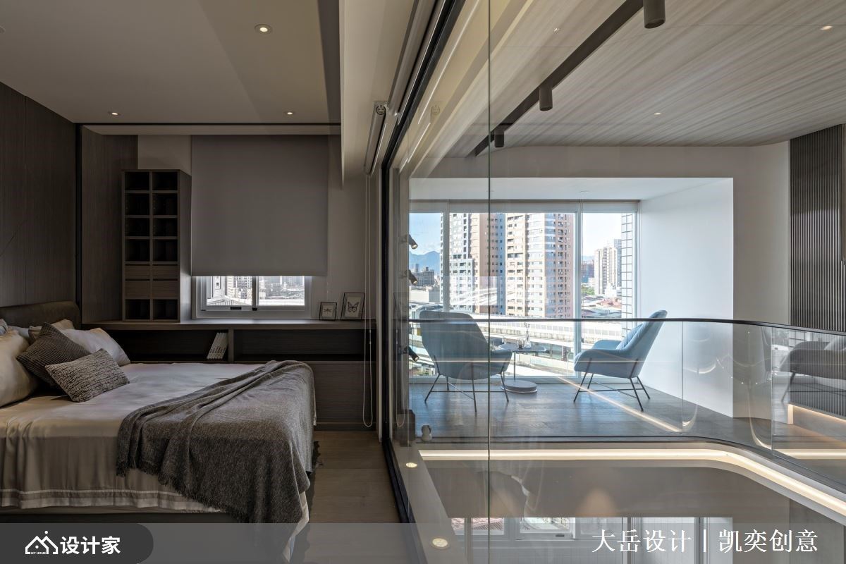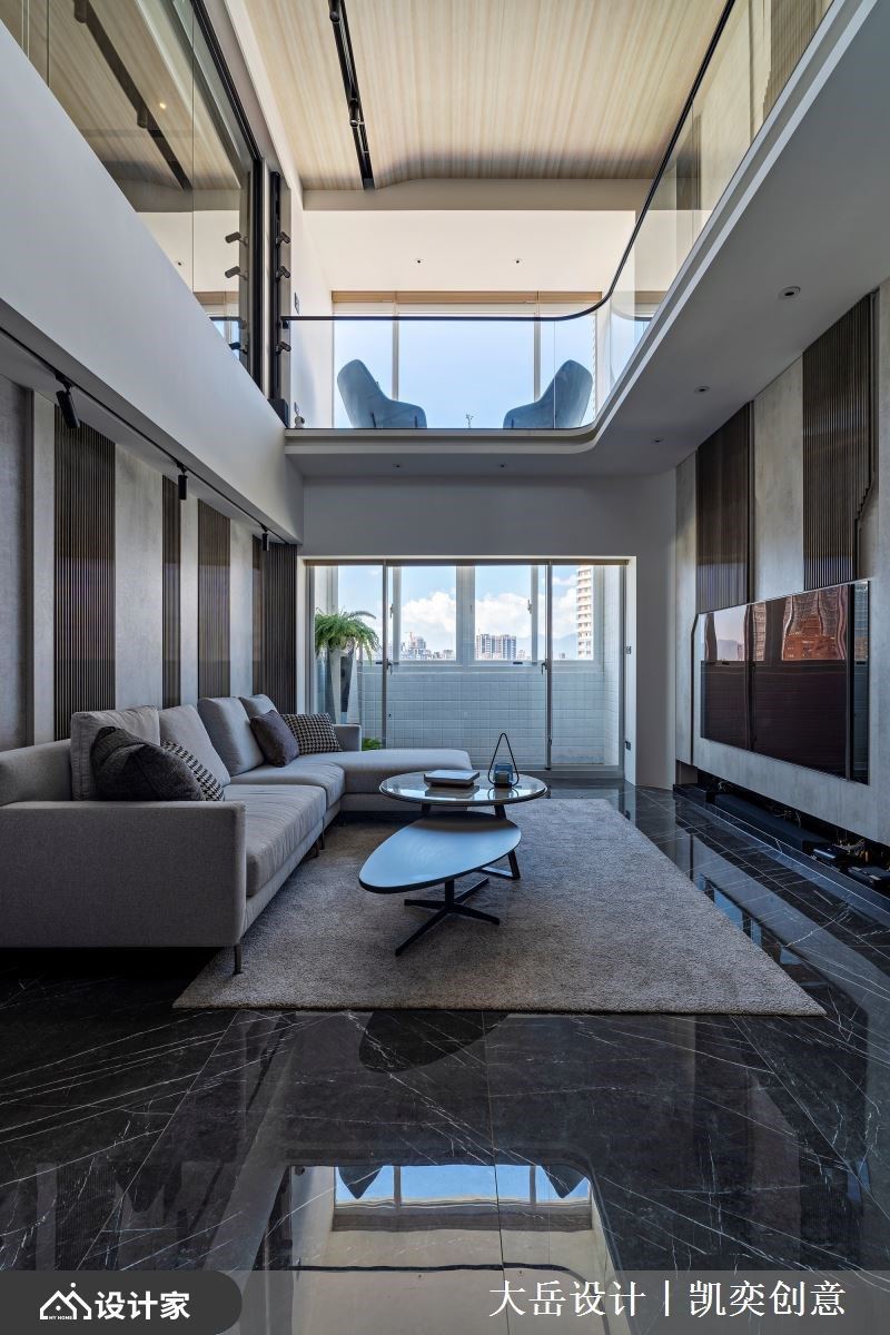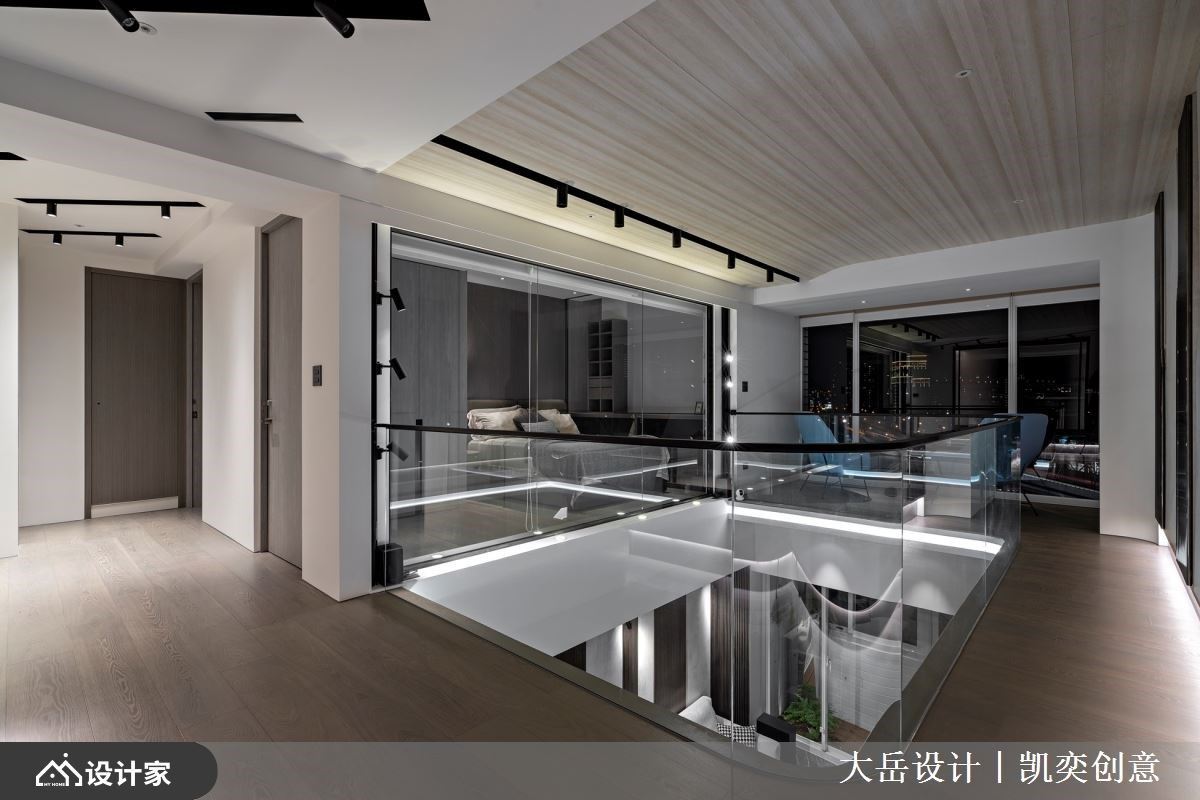 复层老屋改造成人文现代宅,依循挑高建筑体优势,玻璃帷幕引入户外自然光与天际景致,开阔格局延伸客厅尺度,让人一享舒心畅快。 打破制式墙体设计样貌,客厅电视墙结合格栅立面,且延伸至二楼壁面,对面的沙发背墙延伸此元素,达到相互呼应;壁面轻洒晕黄的嵌灯照明,一旁则以蝴蝶造型、绿意植物妆点端景视觉,交织写意、雅致的现代风韵律,叙写生活即艺术。梁下安排餐厨空间,以石材餐桌为核心,石材的自然纹理与朴实灰阶电器柜的立面,创造一股内敛的自然力量。 通往二楼的踏阶与壁面嵌入照明设计,贴心的设计细节让行走的人们更显安心,并持续延伸到二楼的地面运用,替现代风的居家场域注入优雅的情境氛围。二楼设计弧形玻璃帷幕串连主卧、多功能室与观景区,以玻璃作为通透隔间,让自然光流淌一室,展现明亮视野;天花板则以木纹质感呈现,挹注温润的柔美气息。 小编的最爱 主卧在对外的玻璃隔间上搭配窗帘,创造出个人隐私;多功能室藉由渐层的玻璃拉门界定,是小朋友游戏、谈天与亲友到访的休憩处。