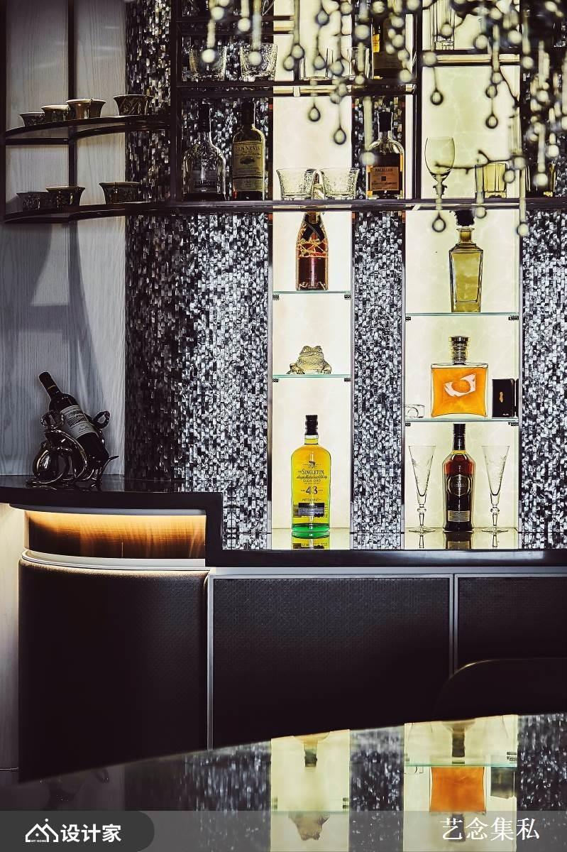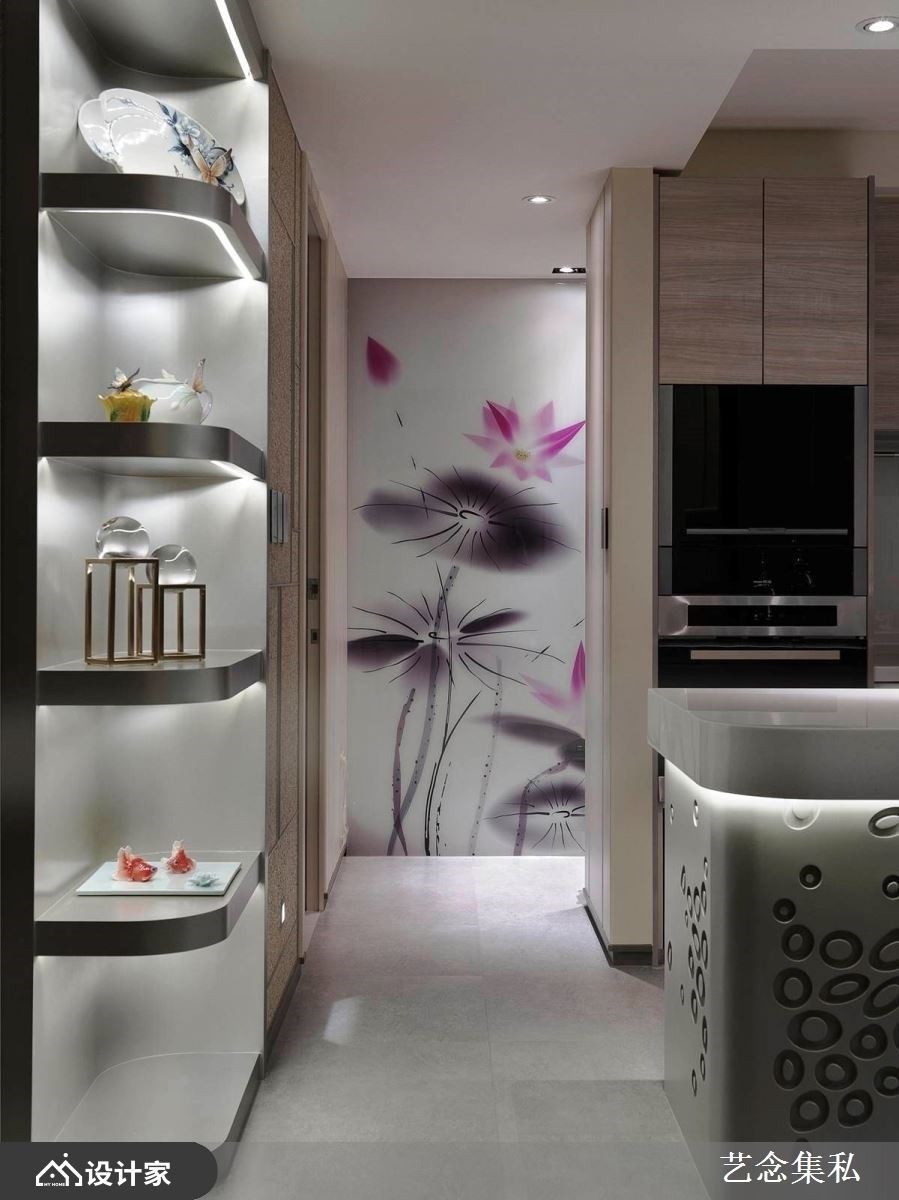 住宅设计中总会认为走道是浪费坪效的设计,所以会尽可能改成开放式规划或调整格局减少廊道,但艺念集私空间设计张绍华、黄千祝总监扭转此刻板印象,反而运用走道规划特色收纳,让客厅的收纳可以被移转到其他地方。在有结构柱或转角的区域,以开放式思考设计兼具展示收纳机能的储藏空间,能让单调的过道成为家中亮点,同时也能将收纳更细腻的分门别类,透过铁件、绷布、皮革、原木或系统板材打造置物层架,解决浪费空间的疑虑又增添住宅风格。而许多豪宅屋主都拥有各自收藏喜好,像是瓷器、藏酒等等则打造玻璃展柜并镶嵌灯带,让收藏像是精品一般陈列,也能避免灰尘,更重要的是从墙面、中岛到柱体都可以嵌入玻璃展柜活化空间喔!