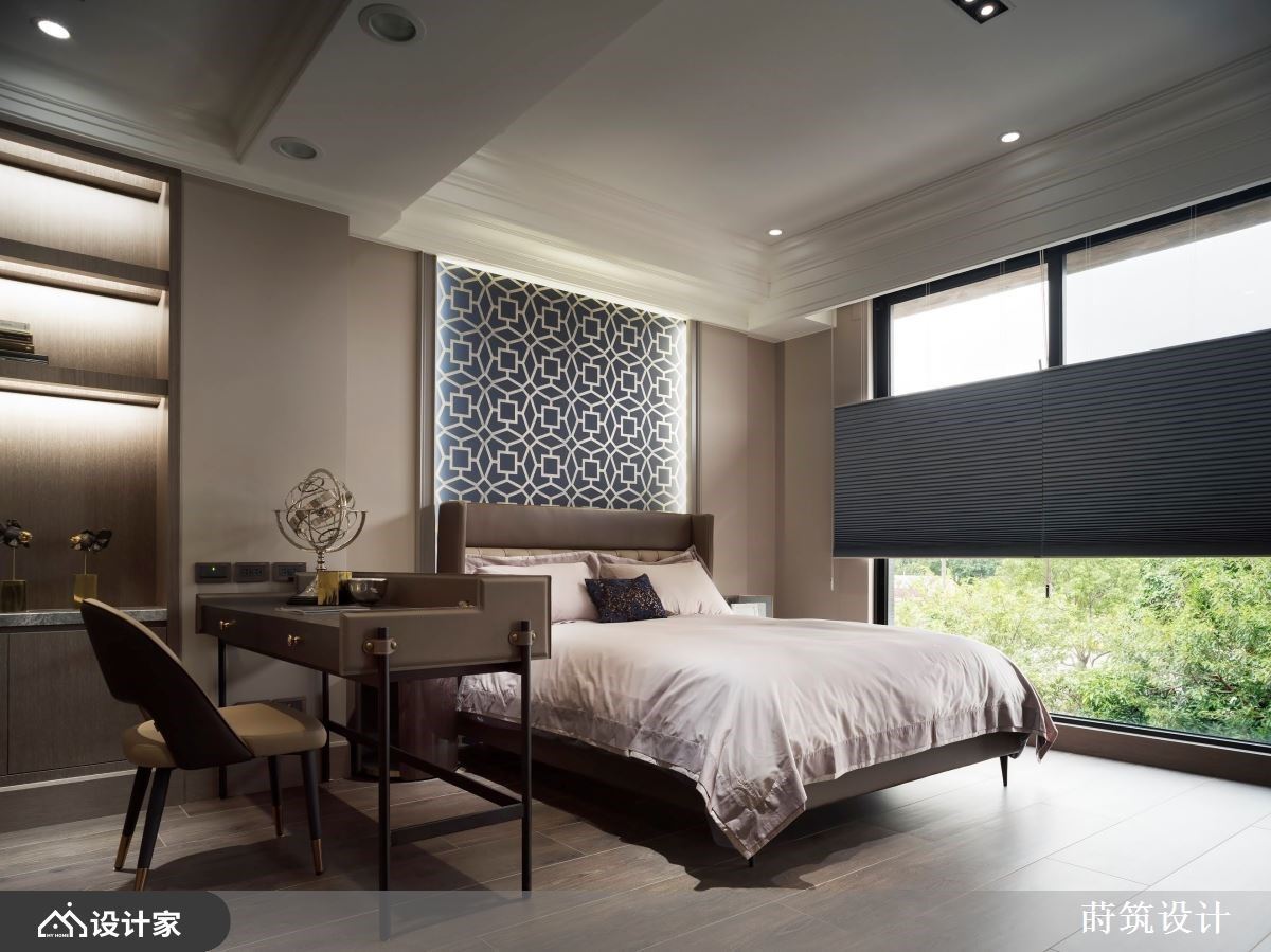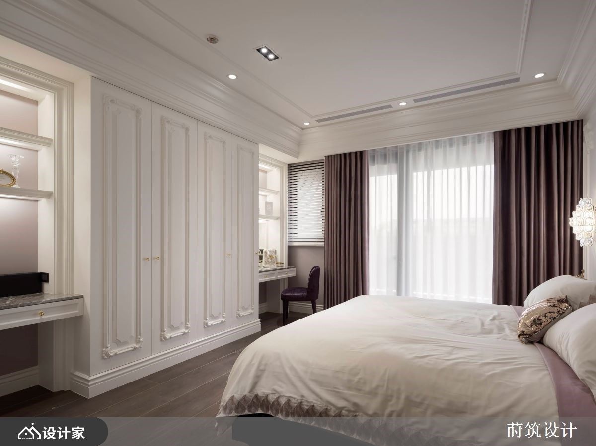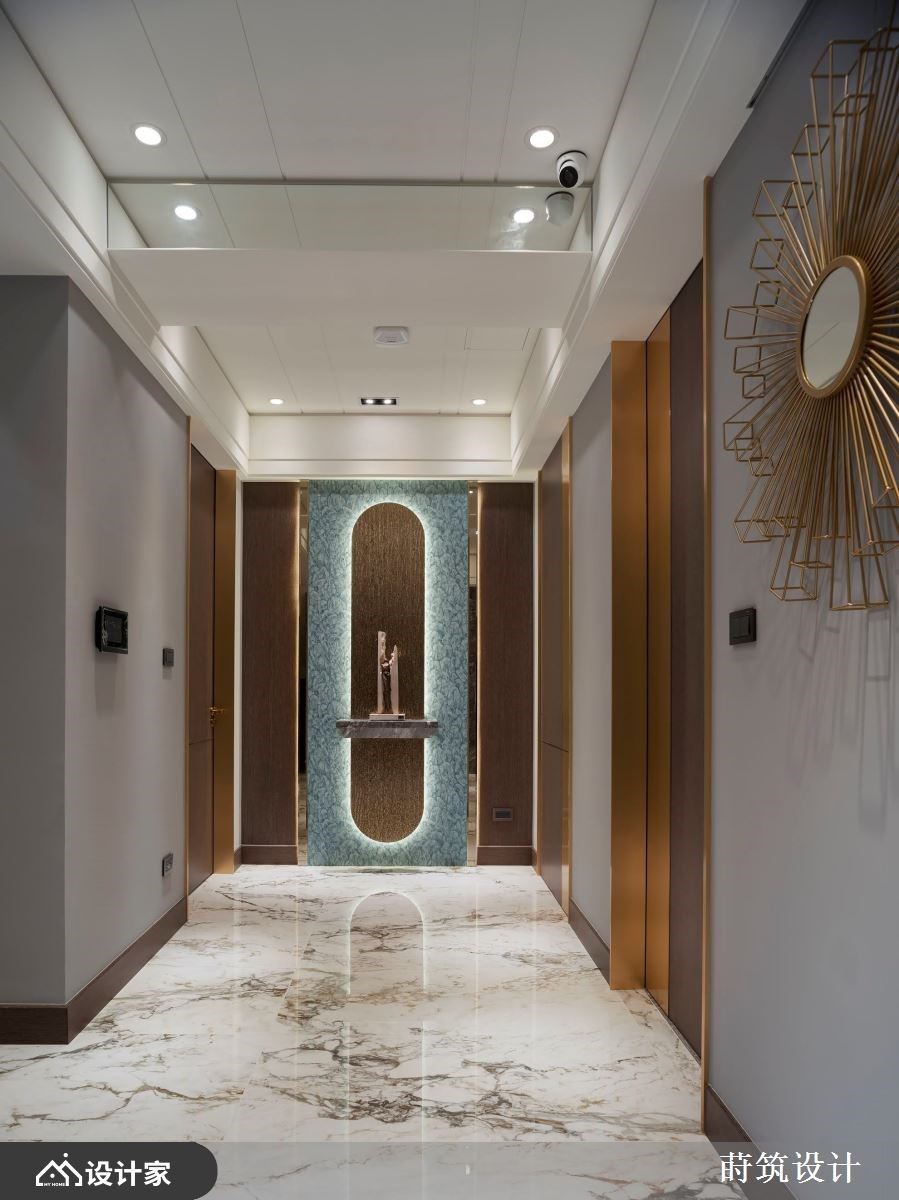 此案是自地自建设计,以新古典风格打造整体空间,除了古典细节的安排,更透过边框、图腾墙纸与自然语汇,华丽之中赋予生命力的美学灵感。 一道黑色边框成为玄关与公领域的分野,同样的元素也运用在餐厅与轻食区之间,巧妙呼应新古典语汇,拉出领域层次。整体空间的天花板利用雕花滚边,彰显古典工艺的丰采;而进入空间后,深深被热带雨林视觉的背墙所撼动,深色边框里铺陈丛林风的进口墙纸,有如画作框景的艺术力道。水晶质感的石材电视墙,结合阶梯设计与灯带安排,在古典的语汇里,倾注纯净高雅的现代质感。 餐厅里,餐柜中间镶嵌茶瀑镜,以直瀑式妆点柜体,一旁壁面安排大象图腾墙纸,与沙发背墙共同对应原始丛林之美;天花板垂挂水晶吊灯,以皮革包覆圆形金属框,结合烟熏色与透明色水晶,即使关灯后,也能欣赏到水晶吊灯独特之美。 小编的最爱 女主卧床头利用深浅紫色打创造边框视觉,展现优雅与浪漫。男主卧的床头结合图腾,壁面利用古典线板勾勒层次,并透过木纹柜体安排,彰显英伦贵族风。儿子房的入口处以绿色特殊墙纸,纳入LED光圈的设计,诠释时尚感的雅痞味。