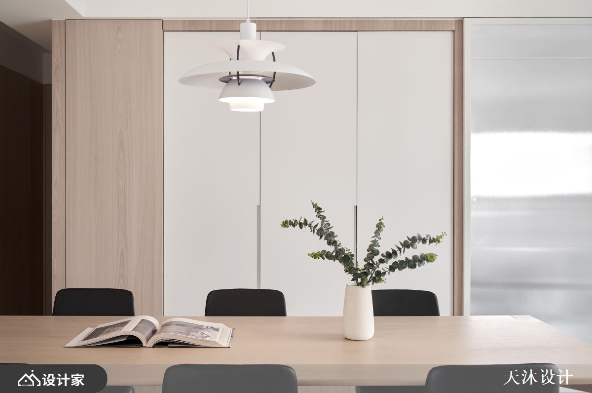 改造指南 1. 无接缝地坪将空间化繁为简 2. 形随机能将收纳化为居家端景 3. 浅木主卧引入阳光与空气 设计师这样做 以形随机能的概念,玄关俐落几何造型柜体完美整合门片柜、展示架与穿鞋椅,浅木与雾黑的设计与地板和电视墙设计相呼应;内部老窗改为玻璃砖,让阳光洒落更为通透。移植原生态美学概念改造 116 平米老屋,跳脱木地板和磁砖的框架,以米白色的无接缝地板铺陈全室,不仅好维护清洁,也营造出宽阔无边际的放松感。 宽敞客厅摆放落地沙发与单椅,以灰阶色彩和现代简约的设计线条,诠释质感生活美学,落地座椅在坐卧的体感上也相对放松。餐厅延续造型与色调搭配,透过一道雾玻璃拉门创造厨房与餐厅的过场。将公领域的风格与配色移转到卧室,稍微拉高浅木的比例营造更柔和的睡眠环境。利用老屋八角窗台规划阅读桌;调光帘能根据作息调配阳光;卫浴在浅木之中铺贴灰色地砖与雾黑水龙头,创造维护与视觉的双赢设计。 小编的最爱 浅木与无接缝地坪的轻柔包覆着各个场域,落地沙发、阳光厨房与窗边书桌,116 平米老屋融合了家人日常,让人推开大门就感受到回家真好。