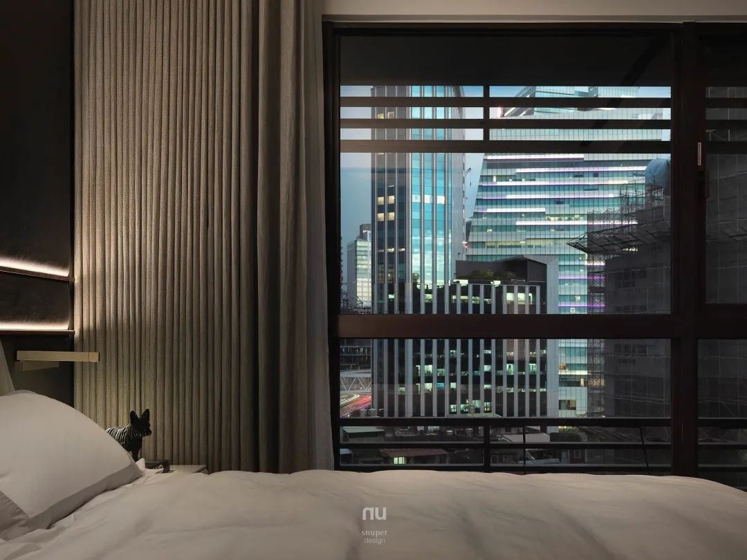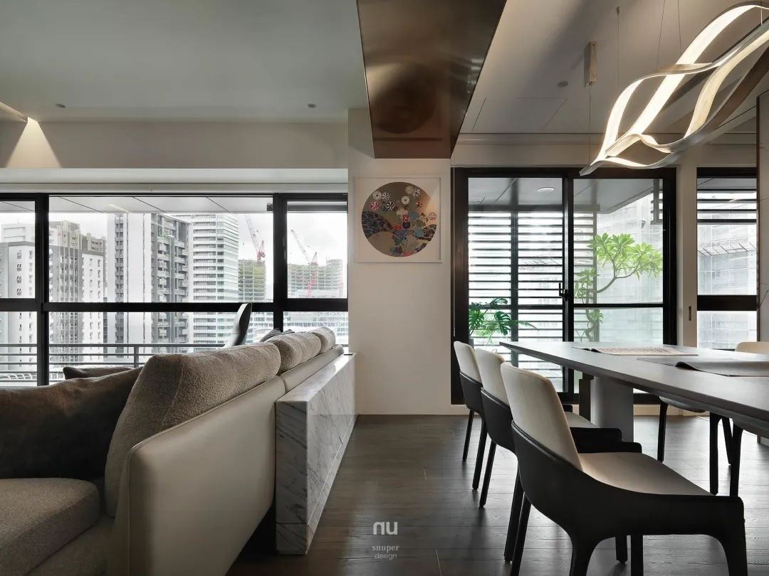 在格局规划,让客、餐厅两扇窗户串联,建筑有优异的景观,可眺望光彩熠熠的城市光景,良好的阳光在日出与日落间,带给空间不同的情绪变化,让家中也有了时光的温度。 透过玻璃窗,直接入眼的是城市起伏的天际线,感受到的是都会的、自由的、尊享的生活方式。