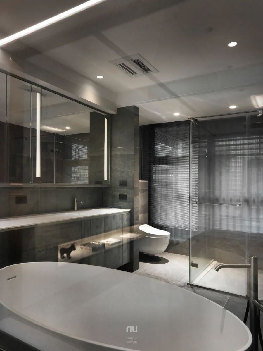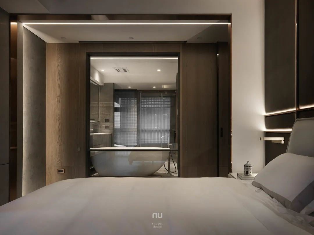 场域的格局大了,人的格局也就大了。 我们希望放大书房、主卧、更衣室和卫生间等私区的延展度,及增加机能性与舒适感受。因此以玻璃拉门做为公私领域的区隔,既可自由开阖、打破门扇限制,也能形塑出通透的氛围,达到围塑宽敞私领域的目的,让居住者优游其中,想有极致自由与隐私。