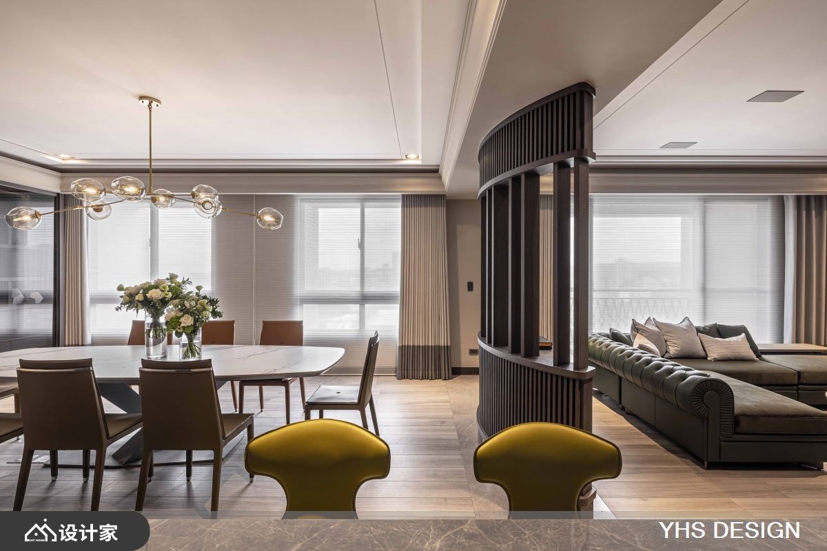 改造指南 1. 异材质地坪在开放空间界定场域 2. 格栅与玻璃拉门创造空间新分野 3. 无阶差地坪实践全龄宅精神 设计师这样做 330 平米住宅由毛胚开始规划,玄关隐藏式收纳、穿鞋椅与镜面,完整了机能、凝聚回家的仪式感。开放式厅区透过不同纹理磁砖拼接,在开放式设计界定场域,深色大理石电视墙与古典家具搭配,诠释现代欧式古典时尚语汇。 弧形格栅屏风形成客厅与餐厨的优雅过场,细腻勾勒出空间的开放与整体性。 导圆角大尺度餐桌,佐以现代设计灯饰,诠释轻奢用餐氛围;厨房中岛延伸大理石桌板,打造专属夫妻小酌的浪漫空间。多功能空间设计双轨道玻璃拉门,开启隔间新视野。主人居室木格栅隐藏收纳与更衣间入口,形塑独立更衣室到主卧流畅的寝居动线; 小编的最爱 卫浴防滑磁砖和宽敞的一字布局,升级沐浴体验;并加装辅助照明照顾住宅安全,以异材质刻画空间的开放性与整体性,全室无阶差体现全龄宅真谛。