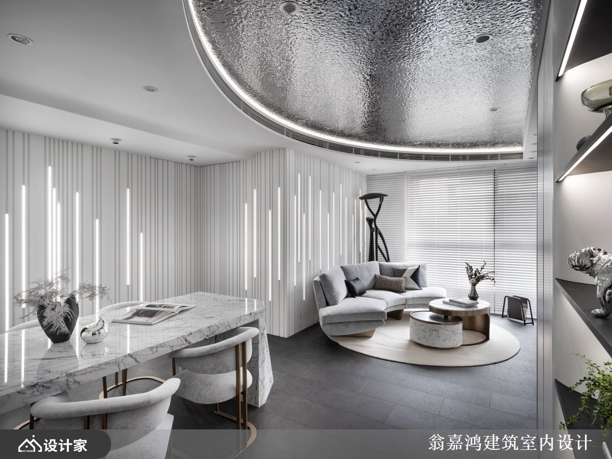 弧形天花铺叙波浪镜面特殊美耐板,善用材质特性,适度映像立面曲线,更在无形中延伸了空间感受,由内而外打造精致细腻的现代居宅。