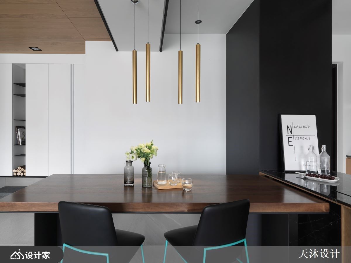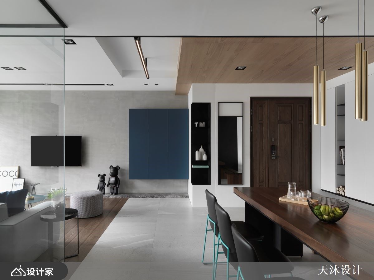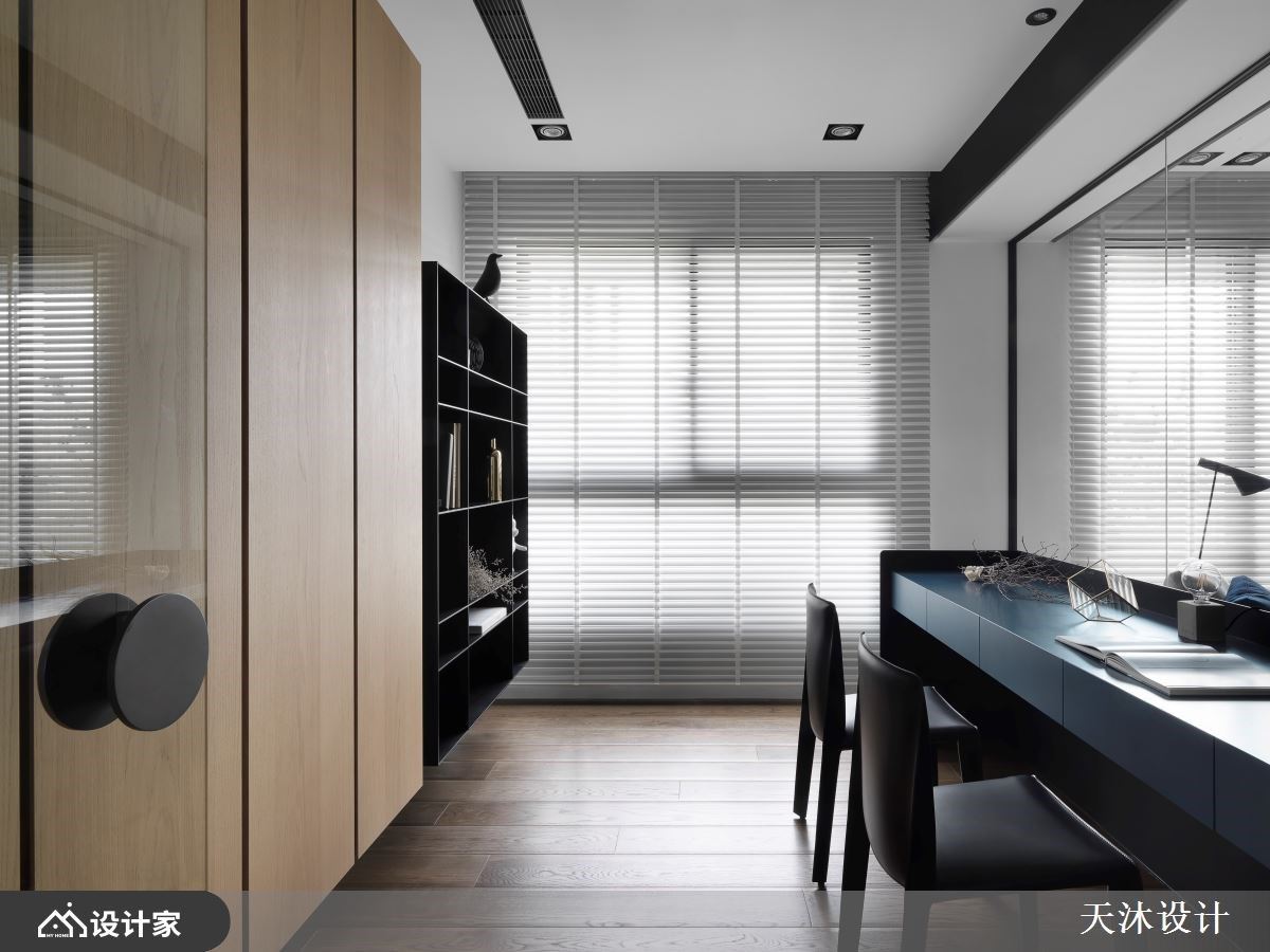 此案为116平米现代宅,天沐设计T.M Design Studio规划齐备的3房2厅2卫,透过重新建构格局与动线,妥善发挥居宅的採光优势,精湛的材质色彩搭配让现代宅更添时尚风貌,大面积留白为挹注慢生活中的一丝惬意气息,给予屋主两人崭新的生活提案。 以无色彩的黑灰白三色为基底,搭衬温煦木质纹理,适留居宅所需暖度,电视主牆铺陈清水模涂料与浅灰地砖相互呼应,明确场域分野,更以铁件深刻描绘空间的立体轮廓;其次,以清玻璃围塑静谧书房,不仅让居者入室便能享有宽敞辽阔的视觉飨宴,无形中凝聚起家人的情感互动,更使日光恣意游走每一隅;最后,拆除原先阴暗厨房的隔断,设置中岛作为餐厨的衔接媒介,化身烹饪用餐的过渡檯面,更共享了客厅与书房的採光,一举数得的设计巧思成为屋主最惊喜之处。