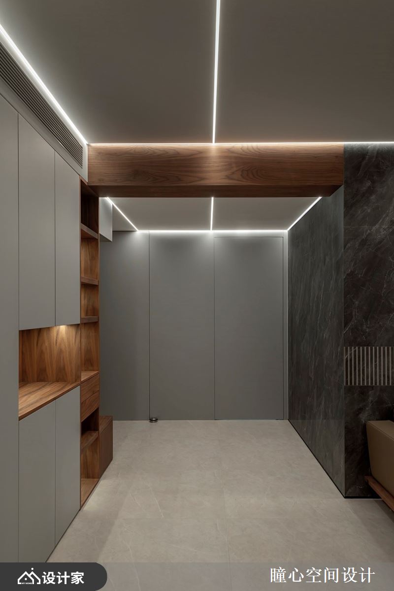 ①适当缩小男孩房面积,玄关进深从1.4米变成2.6米,进门变得豁然开朗,并定制了功能强大的组合玄关柜。