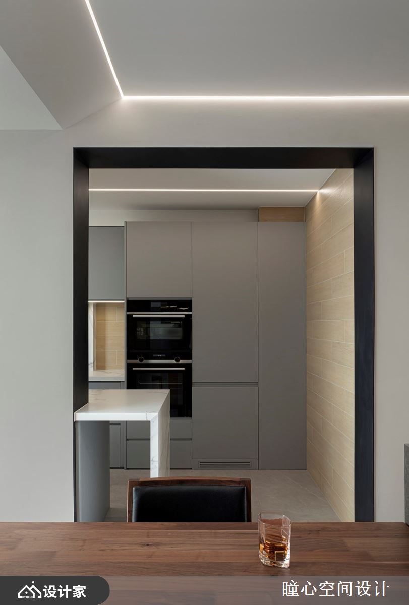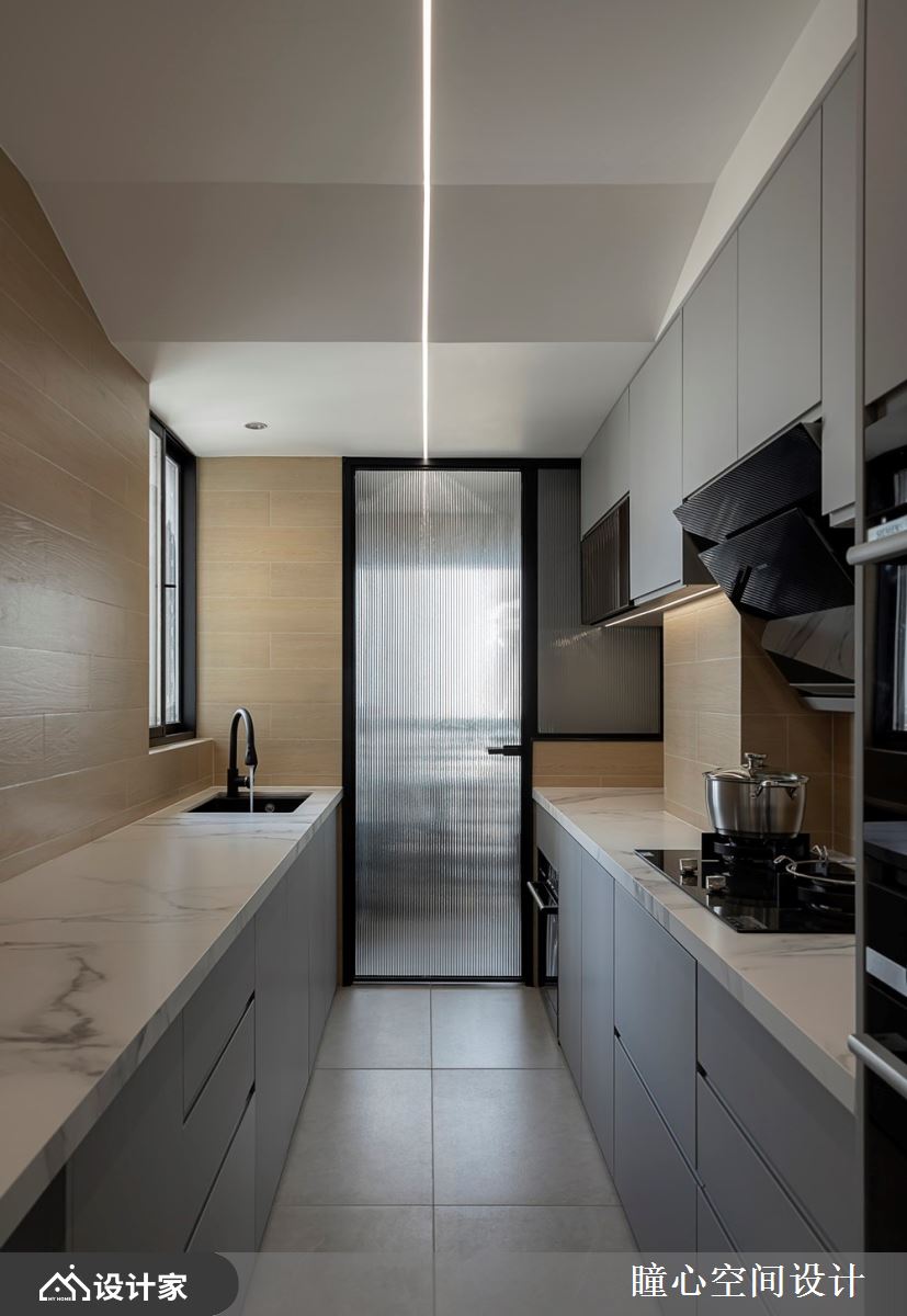 二字型的橱柜布局足够容纳一切的凌乱,还以空间至精至简。
