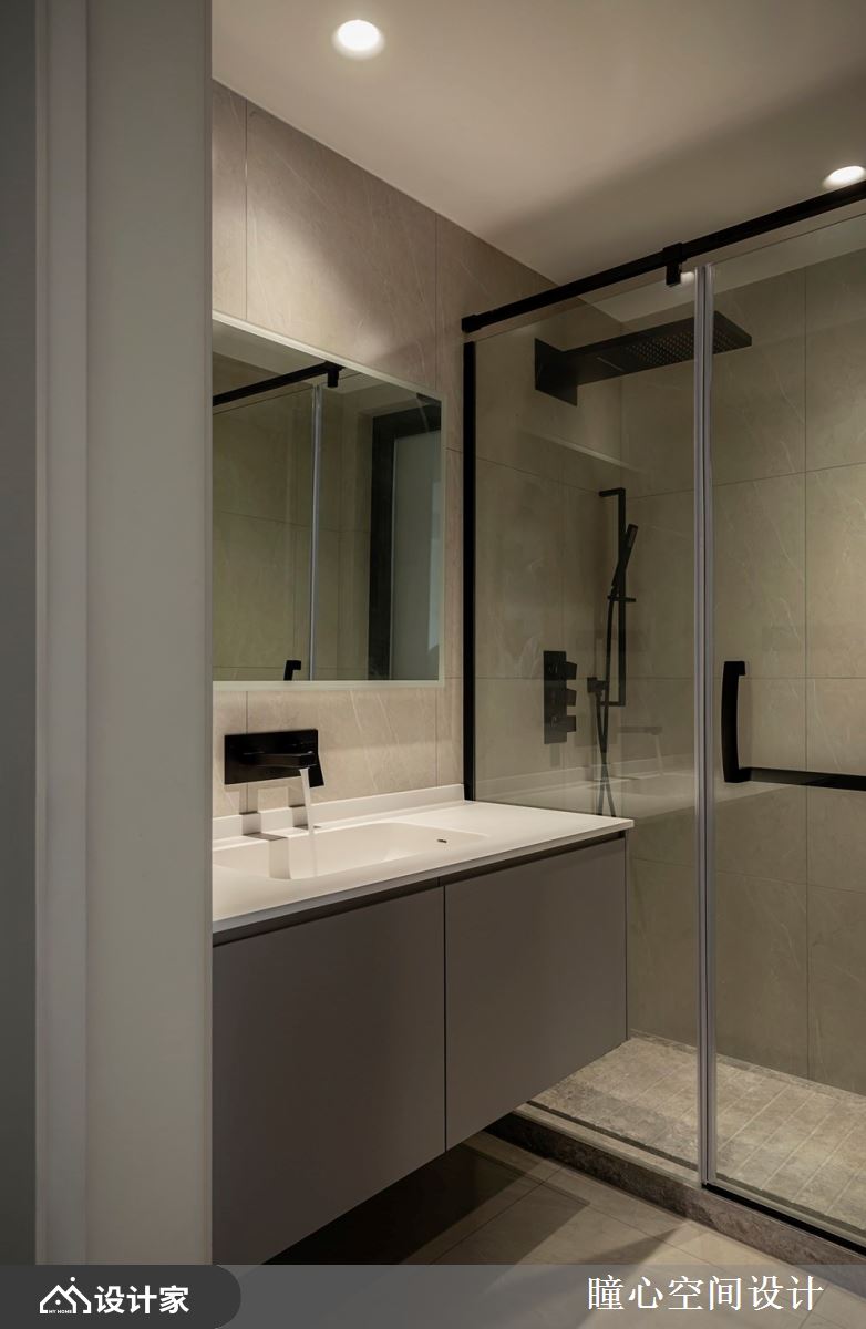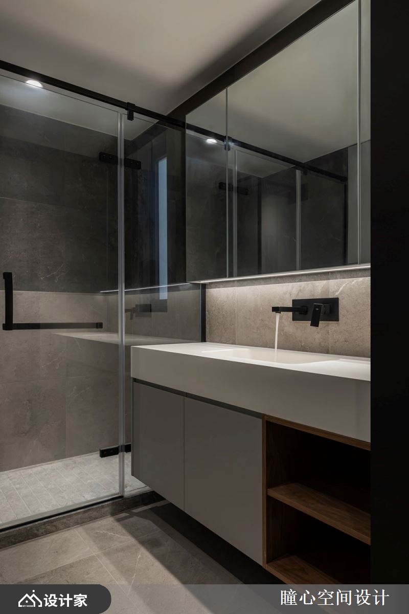 不同折射度的灰,与黑色在这里交汇得刚刚好,同时一体化台盆让洗漱更宽敞。