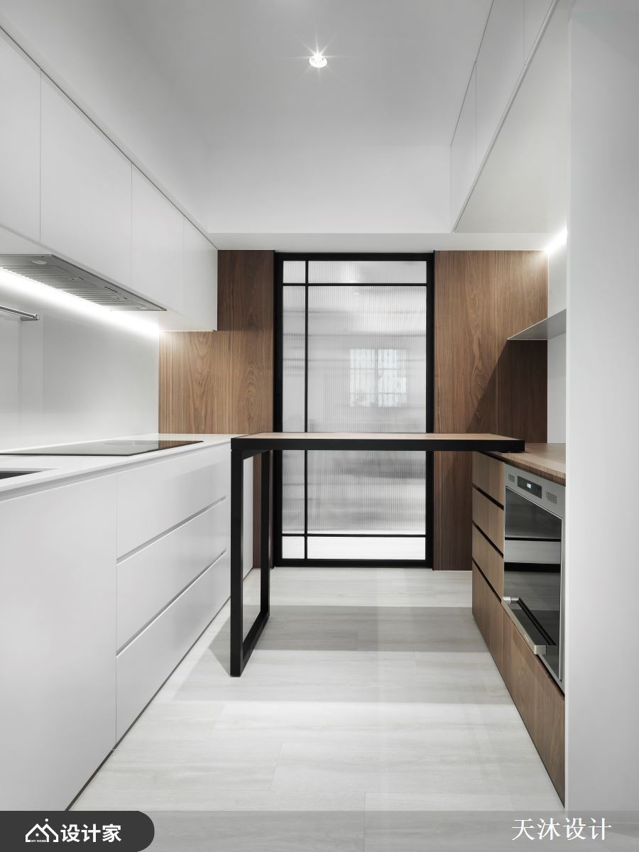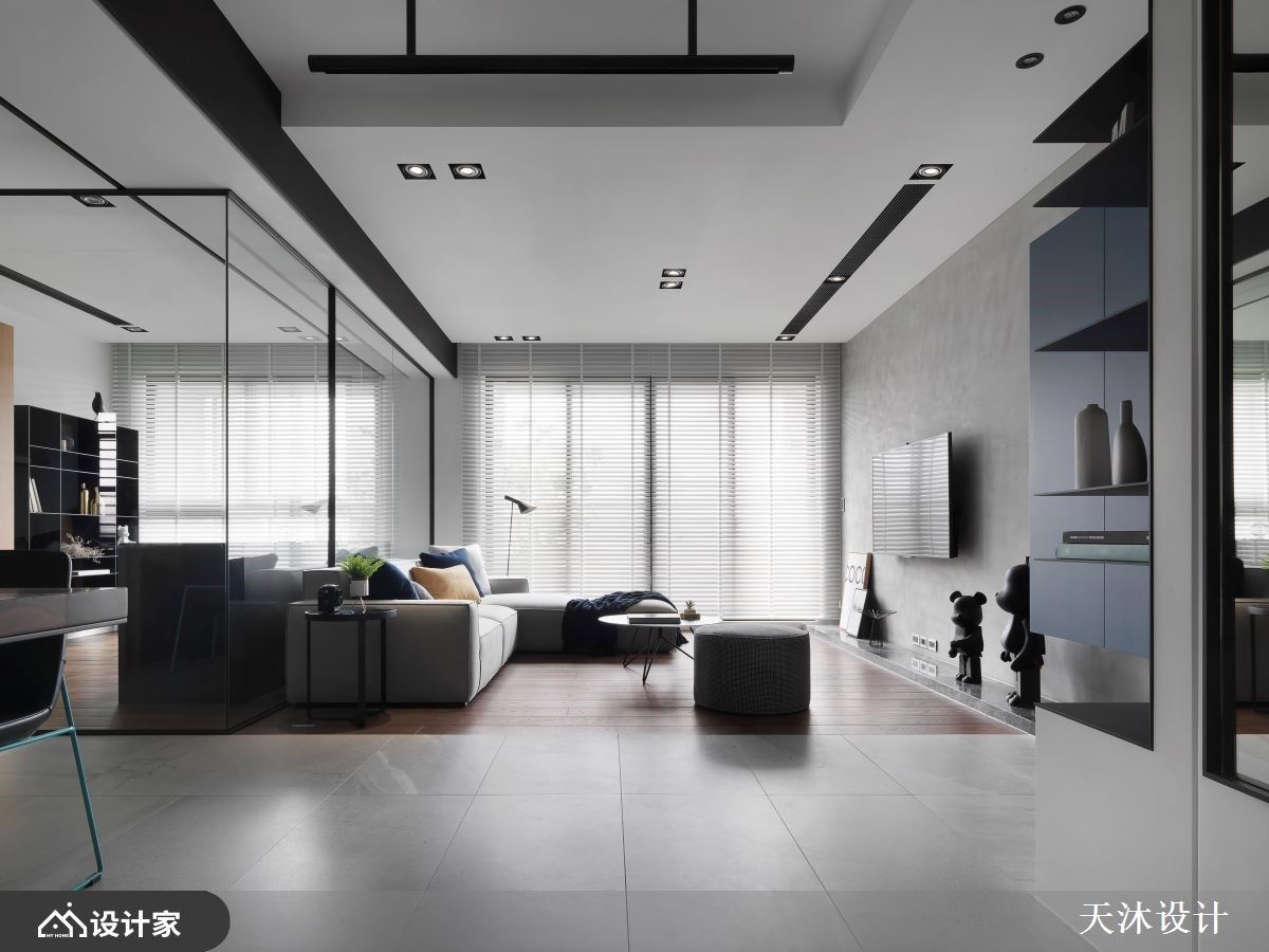 116平米 / 现代风 / 新成屋 / 两大/ 三房两厅两卫 Q1:不想做隔间但也想要界定机能区域怎么办? Tips:材质地坪划客厅与餐厨,玻璃帷幕优化空间感与采光 为了让原本宽敞的公共区域更显优势,天沐设计团队以透过地坪材质简单的分割,将公共空间一分为二。首先由玄关延伸至餐厨区和私领域廊道的意大利地砖,客厅与书房则转为温润的深色海岛型实木木质地板。为了兼顾书房的独立性与公领域的开阔视野,书房隔间墙改为玻璃帷幕,优化空间感之外更提升了餐厨区与廊道采光,室内灯只要设计重点照明即可,不仅节能、更透过设计将自然感带入生活空间。