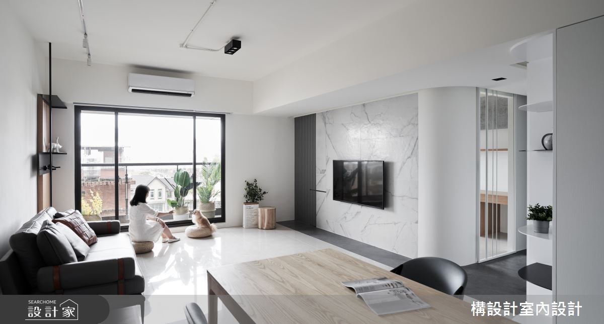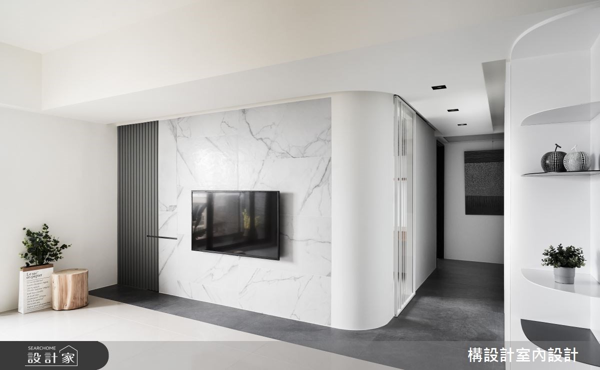 165平米的单层公寓,以纯净无瑕的白色系作为基底,巧用优雅知性的灰色调、温润自然的木色妆点一二,并透过隐藏式的收纳设计,赋予充沛的居家机能,更诠释出现代风格的简洁与俐落。 格局擘划上,一气呵成串连起客厅和餐厨区域,援引窗外的和煦日光,营造通透宽敞的公共空间,电视主墙以大理石纹铺叙,呈现乾净而清爽的居家画面,立面则配合梁柱,运用不同材质将系统柜、展示架暗藏其中,透过深浅不一的排序,辅以圆弧的曲线设计,演绎出空间的立体感和层次感。书房区域,窗景视野和玻璃质材相互映衬,让长型格局产生放大的视觉效果。走入主卧,沈稳的暖灰和木色描绘舒适的休憩氛围,湛蓝的跳色寝具则点亮室内,注入一股活泼生动的气息。 小编的最爱 多功能室选以粉嫩的淡蓝色系和木质调,创造轻盈别致的质感样貌,让人在或坐或躺之间,沈浸於独立宁静的美好天地。