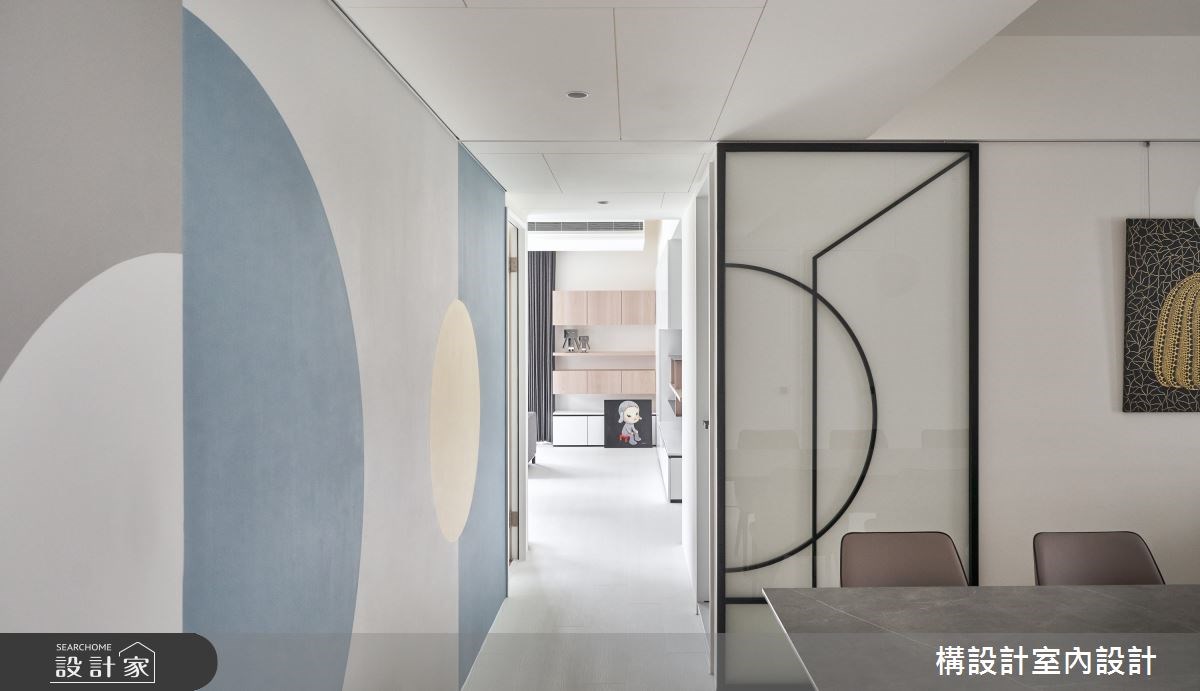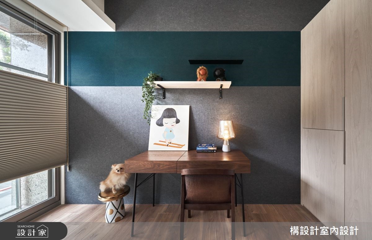 132平米单层宅邸,利用几何图形的流畅与简洁,倾注深浅有致的灰蓝配色,勾勒出北欧风的清新与简约,并融合隐藏收纳、涂鸦黑板墙等亲子宅必备的机能,让中古屋转身成为一家四口的理想居家。 设计团队把握采光优势,揭开两大落地窗引入充沛日光,并以纯白色系与木质交织,形塑宽敞清爽的公共区域。客厅区域结合书房机能,运用不做满的矮墙为屏,保留使用者与家人们对话的空间,也维系舒适不间断的居家视野;一旁墙面结合系统收纳柜,并以缕空处复合展示功能,兼顾简洁美感与充足的收纳需求。餐厨区域,以ㄇ字型的料理动线串起系统厨具与中岛吧台,给予充足的备餐台面,满足多元弹性的料理需求。连结私领域的廊道,则以半圆与矩形写下轻盈跳跃的印象,刷上进口无毒的黑板漆,在健康无虞的环境下,打造孩子尽情涂鸦的角落,也成为大人写下待办事项的留言板。 小编的最爱 书房区域,墙面转以墨绿与深灰铺陈,辅以深浅木纹围绕下,给与需要集中注意力的工作环境一丝沈稳感受。