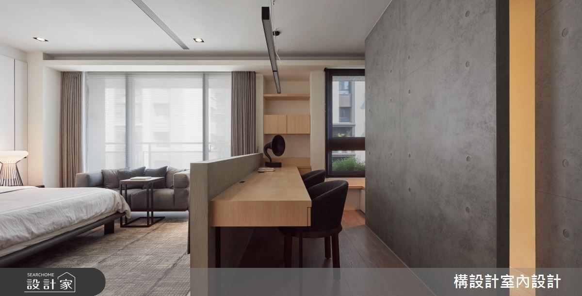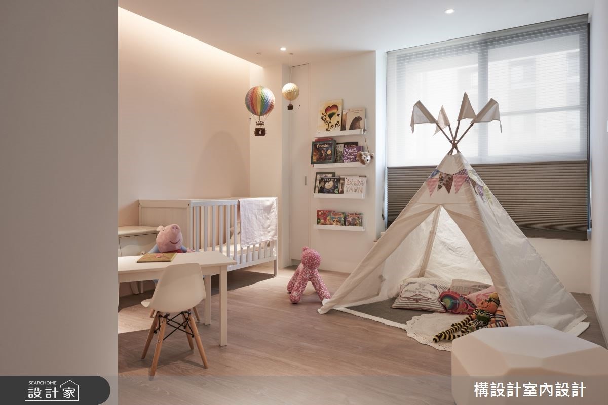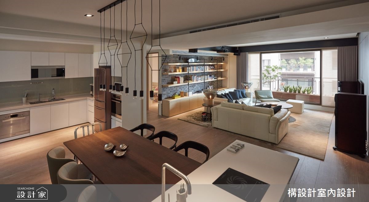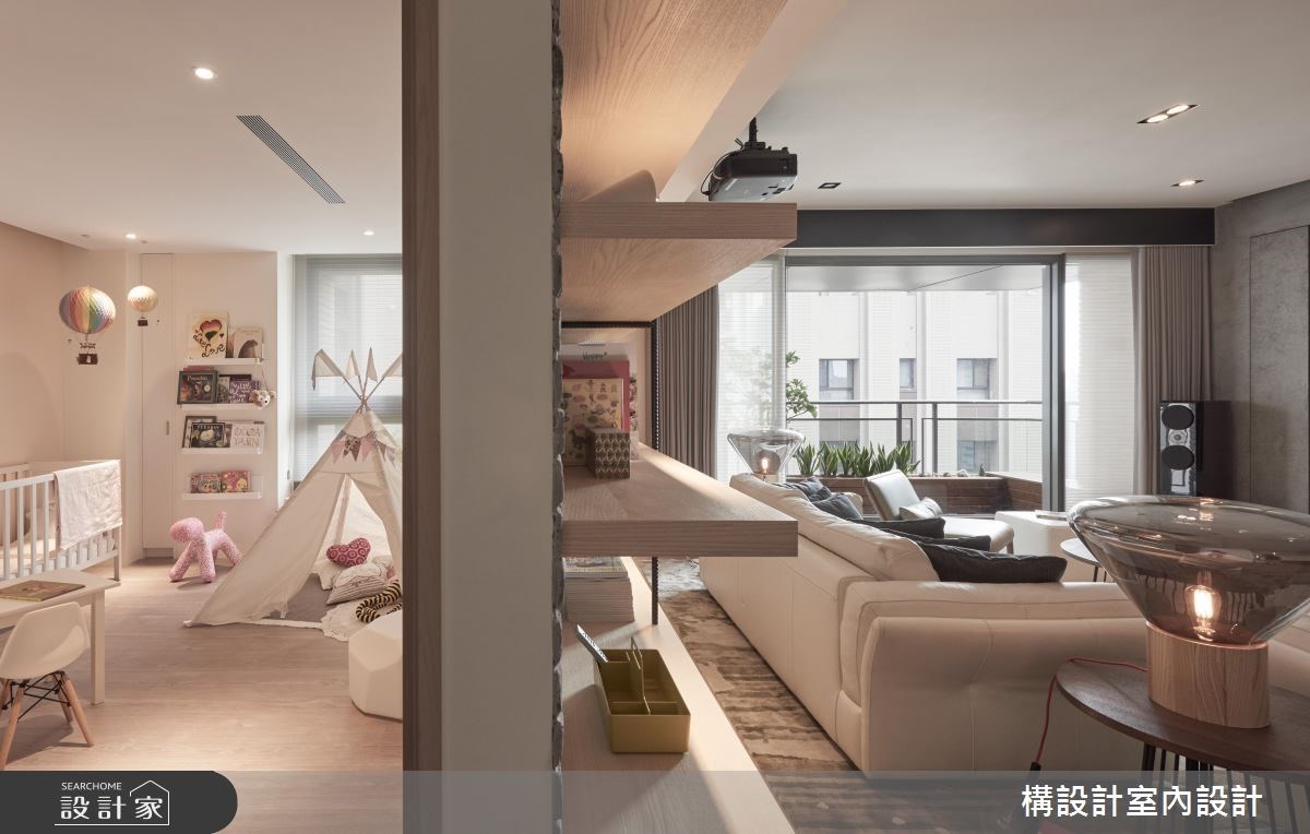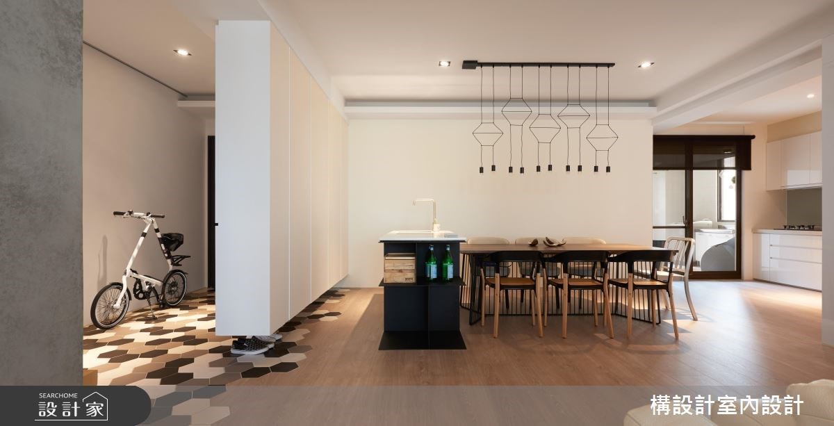 198平米现代风宅邸,选择木色与浅灰作为主轴,搭配细腻的几何线条游走,呈现内敛而暖心的温润感受,让空间回归休闲本质,传递自在舒适的度假氛围,并延续前屋主的装修设计,为小家庭打造经济且合适的的居家环境。 格局布划上,一气呵成串连起客厅与餐厨区域,搭配大篇幅的和煦暖阳,形塑宽敞透亮的清新氛围。玄关区域,缕空的柜体设计,形塑轻盈不沈重的的视觉效果,而六角砖则与木地板交错铺排,柔化场域界线。客厅区域,清水模电视墙写下一丝质朴感受,对比红砖文化石与钢筋层架书墙,悄悄划下率性有型的工业风格;到了夜晚,拉下大型投影幕,加上舒适的L型大沙发,俨然变身为人人称羡的家庭剧院,不用出门就能享受爆米花时光。餐厨区域,以中岛吧台连结餐桌,搭配几合线性灯饰与纯白立面,打造多样化的用餐情境,更描绘趣味有型的俐落端景。主卧区域,以睡眠区、沙发区和书桌区,齐备起居室的完整机能,并配置独立更衣室解决衣物收放的难题。 小编的最爱 儿童室内,选用移动式的轻巧家具,可因应小孩的成长需求调整,并透过帐篷与热气球的意象,开启小朋友的无限想像力。