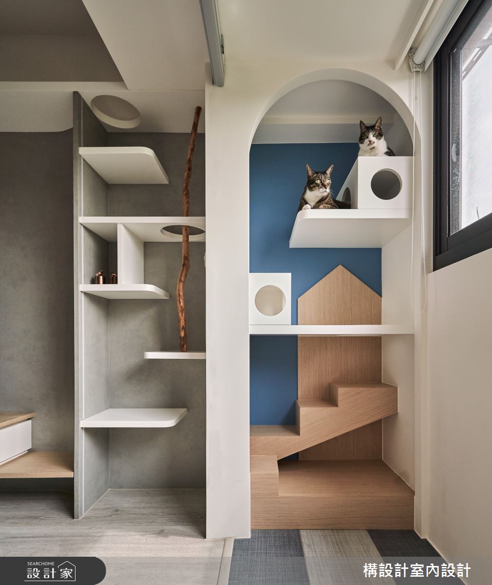 132平米的高龄老屋天花过低、梁柱明显且空间规划不合时宜,设计师将空间重塑,清新的北欧风为基底,为屋主一家打造与猫咪同乐的美好空间。