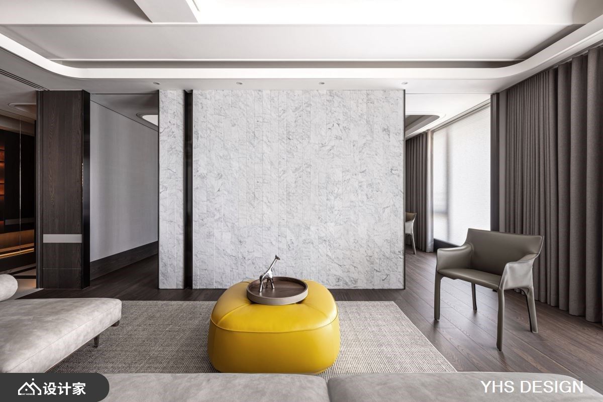 现代简约风延续现代的利落与简约的清爽,层层堆栈的设计揉捻出独一无二的居家风格,此案空間高达150坪米,设计师透过动线与弹性隔间的应用解构空间,以达到构筑高互动性的主轴,各空间既各自独立又紧密相连。