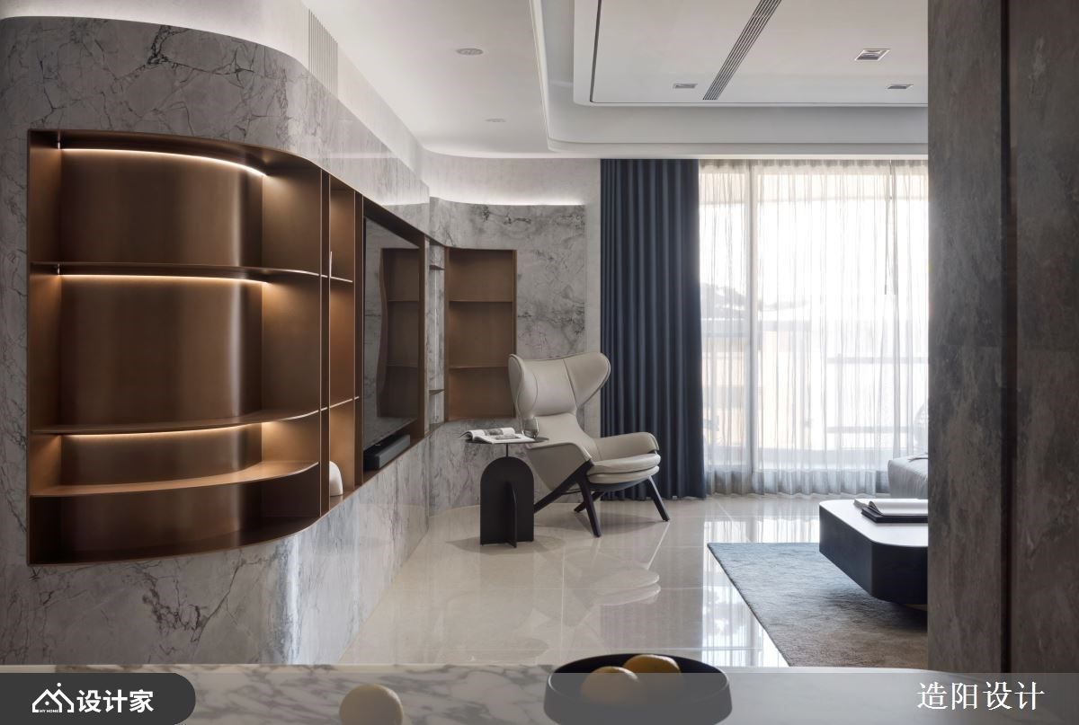 若要体现大宅的精致质感,必定得在意细节巧思!这间300坪米现代风大宅,在轻透敞亮的采光条件下,以天然大器的浅灰大理石为主轴,搭配镀钛、间接照明、圆弧线条等多样的设计手法,一展五星级饭店才有的低调奢华感,为即将入住的四口小家庭,打造舒适却充满质感的居家面貌。