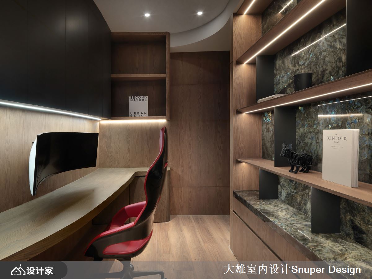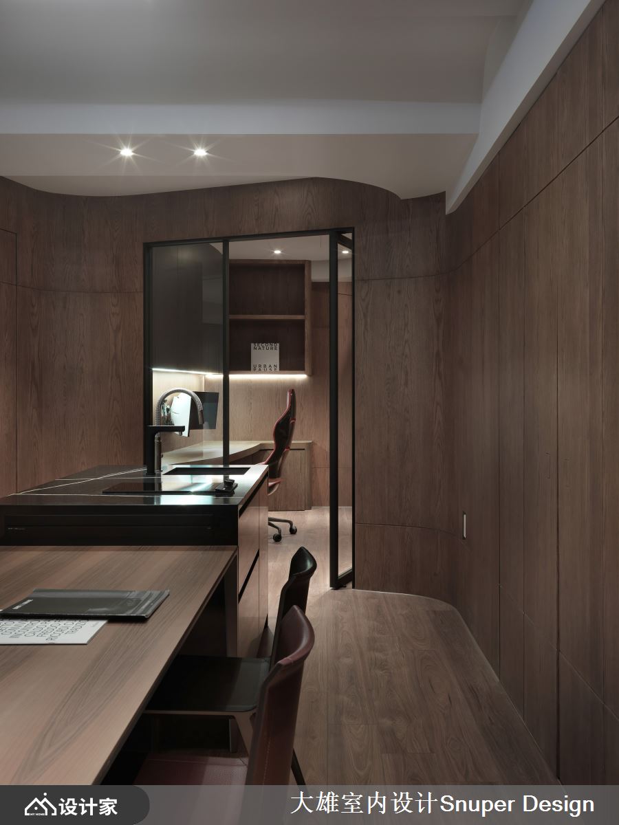 走入屋主的办公一隅,书房以蜿蜒曲线围塑,无形呼应全室语彙。