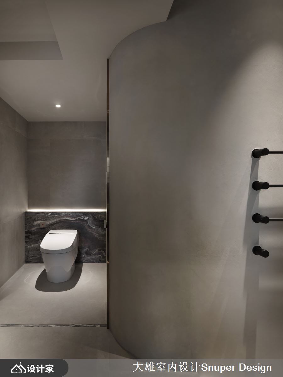 由于屋主为独自居住,透过敞开客餐厨三大场域,获取更加开阔的厅区视野,并以现代轻奢作为设计主轴,先是铺叙深色调打造沉稳内敛的场域氛围;电视牆选用阿凡达奢石,富有天然纹理,更为居宅奠定了雍容大气的鲜明表情,天花及壁面处运用柔美弧线,消弭压迫樑柱的存在感。