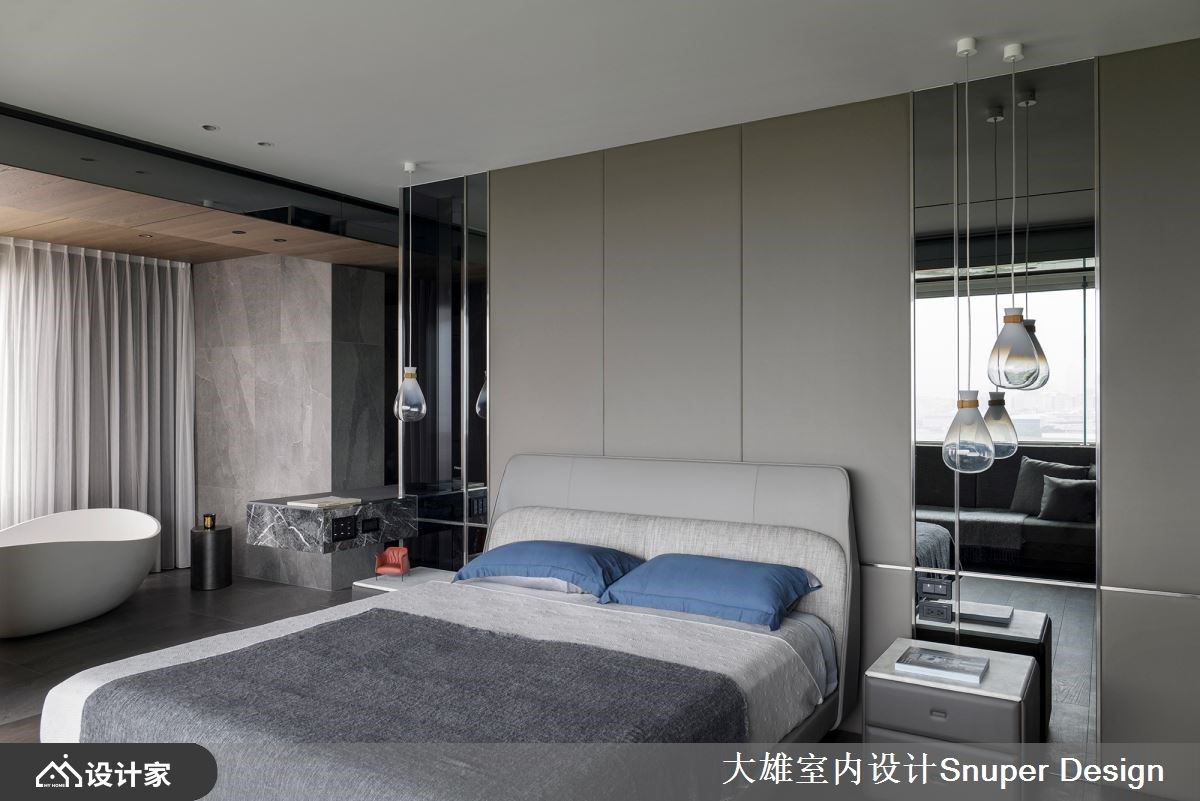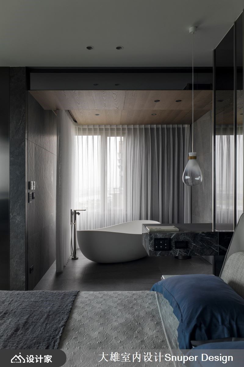 私密主卧以五星行政套房为设计主轴,破除隔间限制,将独立浴缸移植至临窗处,形塑独立又开放的休憩场域,更圆梦了屋主对于仪式感的期待与愿想。