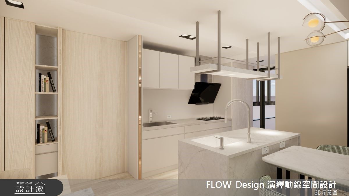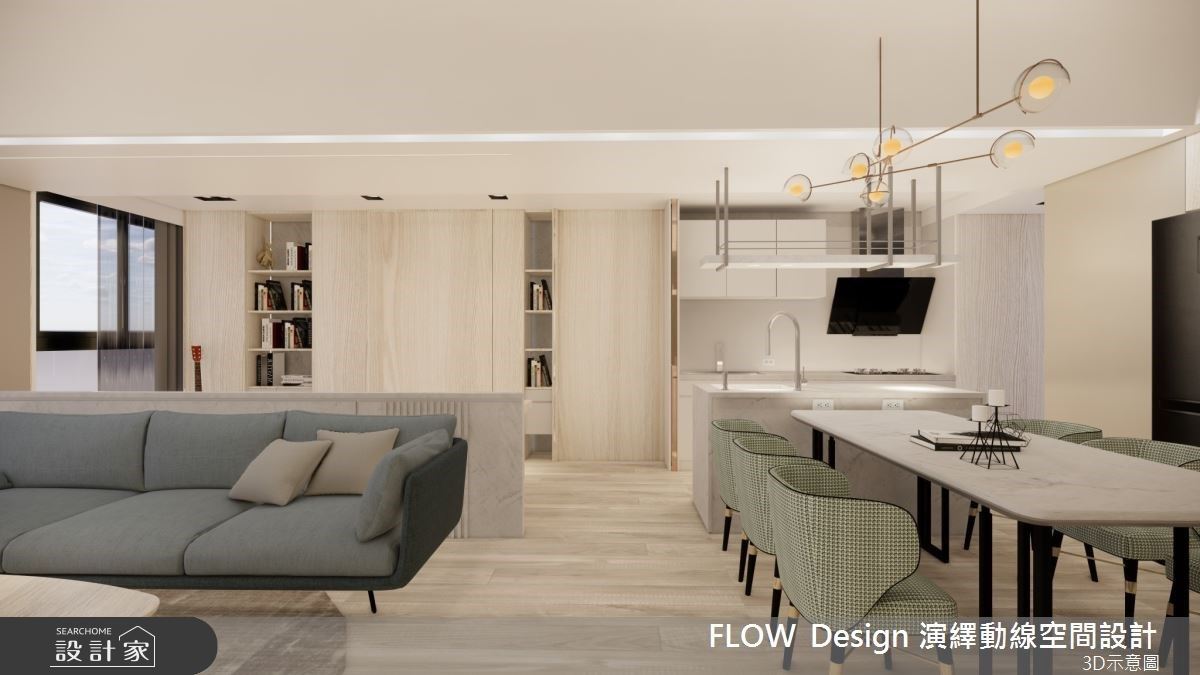40坪的中古老宅褪去岁月的痕迹化身为现代风奶茶系住宅,以全新的姿态在陪伴家人们下一个十年。 甫入屋内,玄关处规划落尘区作为日常出门前的最後一道仪式,并透过设置透明玻璃屏风化解视线直冲厅区的穿堂煞。进入室内以温柔的乳白、浅鹅黄搭配黄气氛黄灯营造亲切可人的形象。 沙发软件选择雾蓝色,既不会过於厚重又可融入整体;右侧安装大片落地窗扇引光入室提升整体采光照明。後方为一家人平日用餐交流的餐厨场域,为符合屋主的期望在动线规划上巧思设计让厨房与书房可以相连通,拉近与孩子们的距离,并於流理台上方加装吊挂收纳层板,有效利用垂直收纳空间。 寝卧私领域延伸一贯风格,重新规画格局将原先畸零的小房间纳入规划为专属的更衣间,慰劳妈妈平日打点家中辛苦的付出。 小编的最爱 全屋各角落、房间皆周全规划到对外向阳窗,家中成员无论走到哪里都可以在艳阳日感受到光的温暖