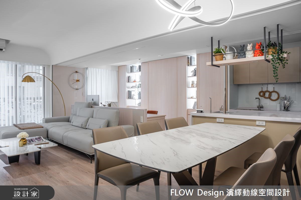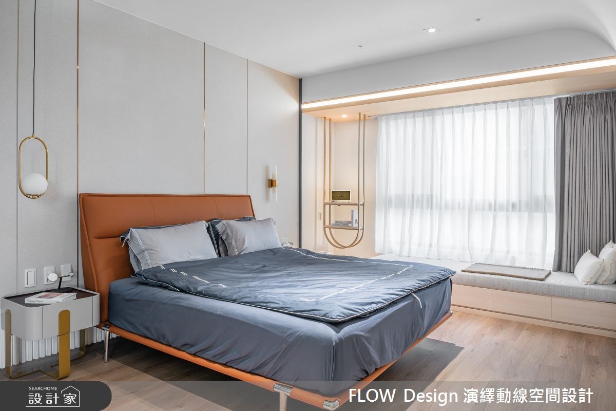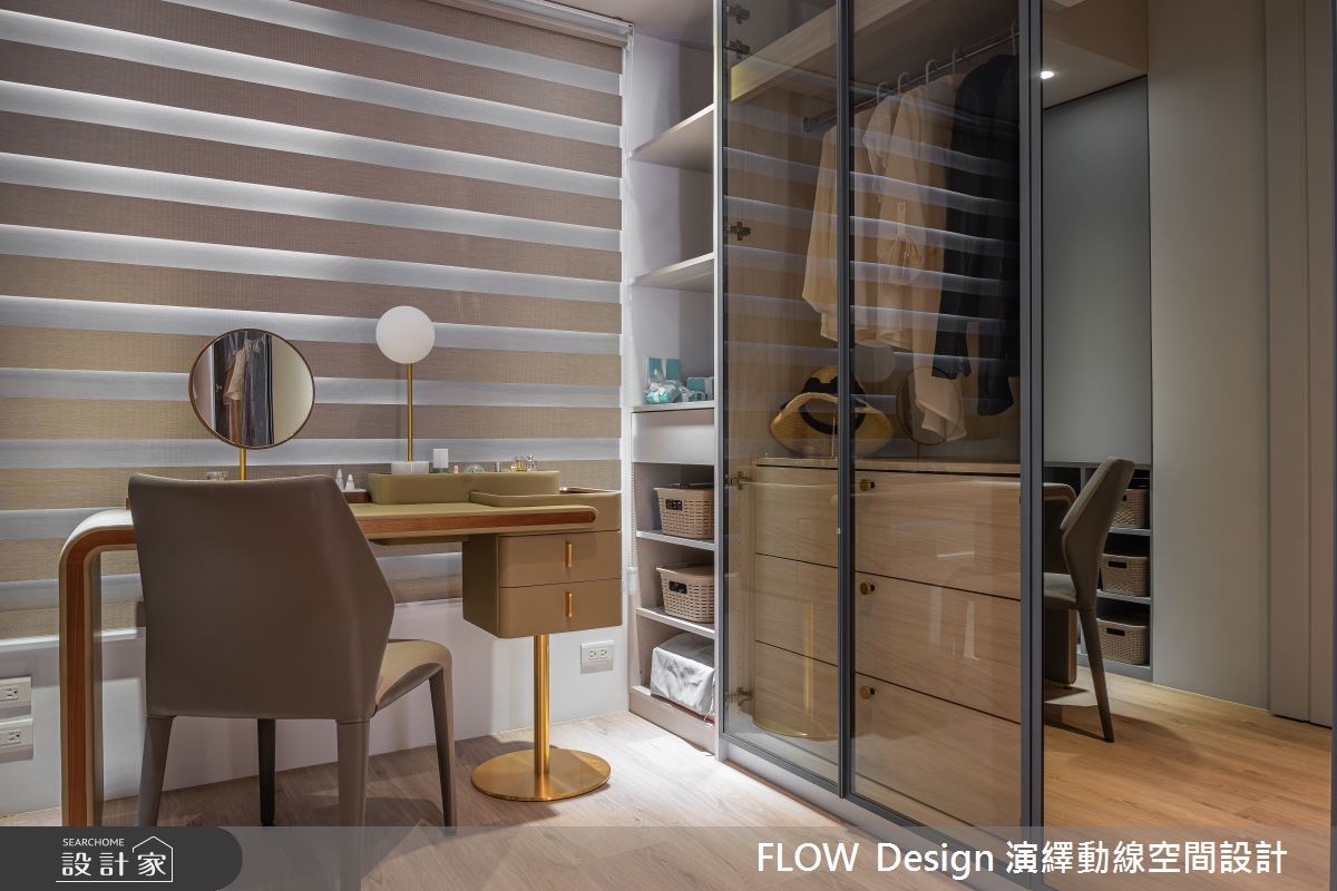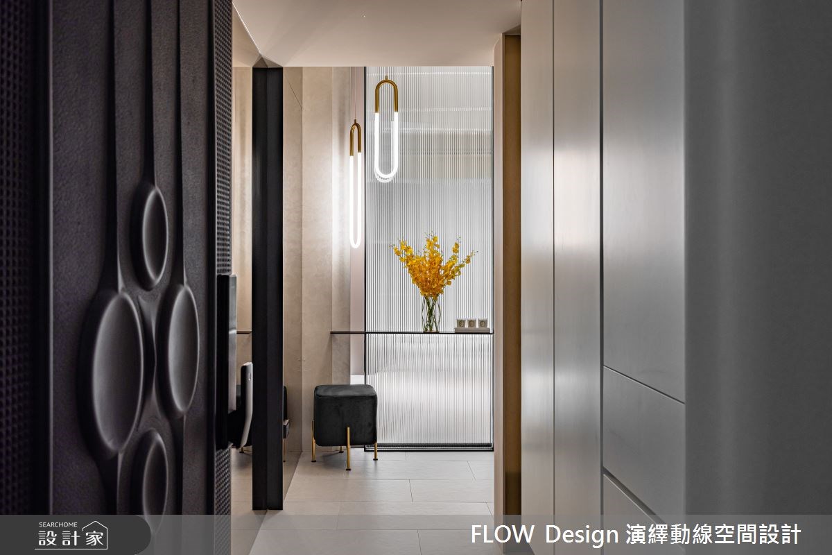 由中古屋翻新的住宅中,大面积浅色木作贴皮混搭镀钛金属和烤玻勾勒细节,并沿着凸出的梁柱规划收纳拉齐空间水平,将原本陈旧的室内格局变得明亮开阔,更大幅升级主卧机能,让医师屋主累了一天回到家能被贴心设计疗癒。 玄关将收纳柜透过镶嵌式设计保留充足的落尘区宽度,订制长虹玻璃铁件屏风化解穿堂煞风水疑虑,同时也营造别致温暖的进门端景。39 坪的室内空间虽然隔了四房,但却意外宽敞,拆除厨房隔间改为开放,并加装中岛扩充料理机能、将餐厨区整合在一起。客厅收纳柜采用悬浮设计,电视墙下半部铺贴镜面和镶嵌灯带,搭配 Bang & Olufsen 新型音响电视,营造轻盈的客厅视觉。沙发後方规划开放式书房,让公领域机能更多元外,更消弭中古屋窄长廊道,将成形空间做最好的发挥。 小编的最爱 重塑中古屋卫浴,利用轻隔间墙、玻璃帷幕让独立更衣间与卫浴整并在主卧空间,将睡眠区收纳降至最少,在窗边规划长型休憩卧榻,单纯化空间机能;化妆台与衣柜则规划办独立区域,提升隐私性也让收纳做更细腻的客制化。最特别的是将主卧卫浴洗手台外移,让更衣间、卧室更方便使用,浴缸与淋浴间则安排在内侧保有采光与隐私,是屋主夫妻最爱的改造区域。
