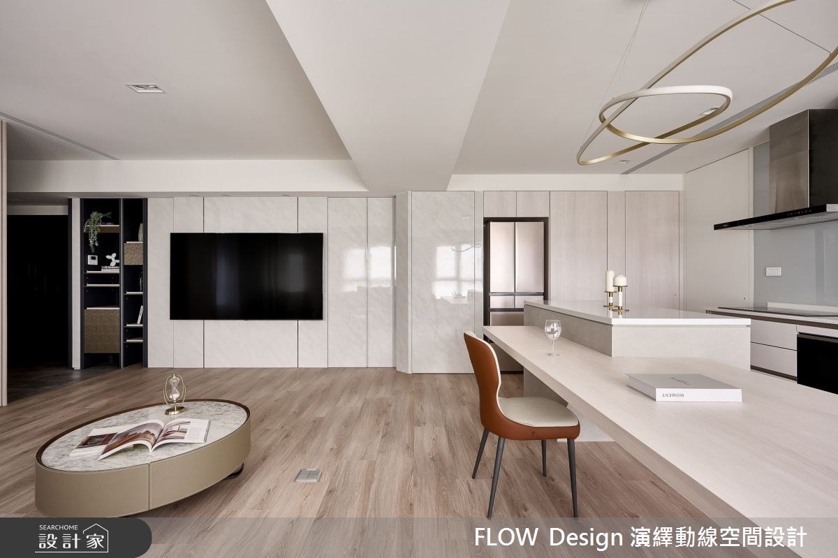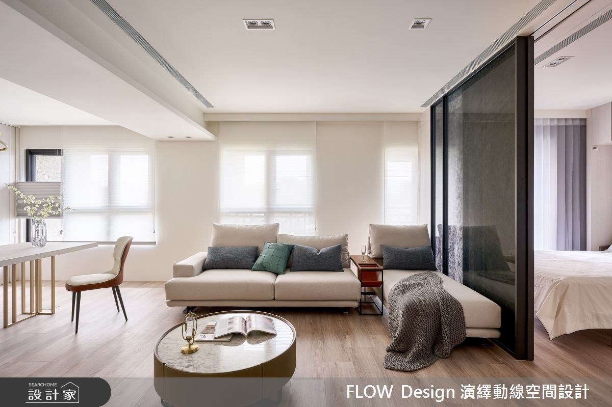 醇香迷人的奶茶色调,总是创造温暖放松的氛围!这对新婚夫妻买下32坪新居,选择大篇幅的木质调、米色软装家具,建立充满质感的奶茶色基底,搭配镀钛灯饰、石纹板材等精致元素,点亮一丝奢华气息。同时,释放最初的格局设定,不但额外增添玄关、弹性客房,就连采光、空间感也大幅提升,完美呈现夫妻俩的梦想画面! 原屋况拥有许多廊道,造成空间上的浪费,此次透过开放式手法重塑格局,产生双倍放大的宽敞样貌,也引入连续不断的自然采光。透过客房的配置,巧妙创造二进式的玄关廊道,顺势沿着立面安排柜体,规划出入动线所需的收纳机能。连贯的客厅、厨房,随着一体成型的石纹立面,依序配置电视墙、电器柜与大量柜体,在井然有序的画面里,隐藏意想不到的储物空间。 开放式厨房里,配置复合餐桌的中岛吧台,延伸充足的备餐料理区外,平时也是小酌、阅读的弹性场域。走入私领域,更衣间的窗扇日光充足,形塑暖洋洋的慵懒角落,再摆上浪漫的玫瑰粉单椅,让女主人沈浸在宠爱自我的美好时光。 小编的最爱 半开放的客房空间,选择黑玻拉门形塑隐约的通透感,内部使用隐藏床设计,满足国外友人住宿的需求,同时,收放自如的特性,也让女主人拥有专属的健身空间,是一举两得的聪明巧思。