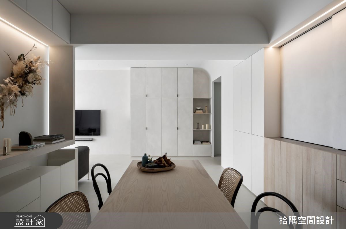 打造理想居家风格的过程里,挑选建材绝对是必经的重要环节!虽然每种风格看似有其代表性的建材,如日式无印风大量的木头元素、突显工业风格的铁件与水泥,但其实建材本身只有材料独有的特性而不具风格属性。 拾隅空间设计用粗犷的「水泥粉光」与「清水模」搭配各种异材质,扭转水泥刚硬粗犷的刻板印象;保留异材质的个别特色,藉由色彩、纹理做到风格上的调和,在简约设计中设定好材质的主从之分。不论是单身女子宅、新婚住宅还是亲子空间,水泥粉光与异材质的搭配能诠释设计的刚与柔,用异材质单纯化的生活空间。 Project x 4 Project 01 水泥涂料 x 系统板材 编织轻柔的生活行板 简约设计指的并非用材的精简,而是追求空间带给居住者清澈的心理感受。空间中地板材质用新研发的水泥无缝涂料,混入石英粉调和而成的特殊涂料带有水泥粉光略粗糙的质地与气孔,并以表面做消光搭配墙面水泥粉光的质感。 墙面同样延续浅灰系主轴,电视主墙的水泥粉光一直延续到木作柜门,为了更精确的掌握水泥粉光涂料在异材质上呈现的质地与色彩,设计师会预先将木作、系统板、涂料等等都先打版到现场比对,充分了解水泥粉光涂料在光线与异材质上的表现,才能让涂布、纹理与色调上达到和谐与统一美。