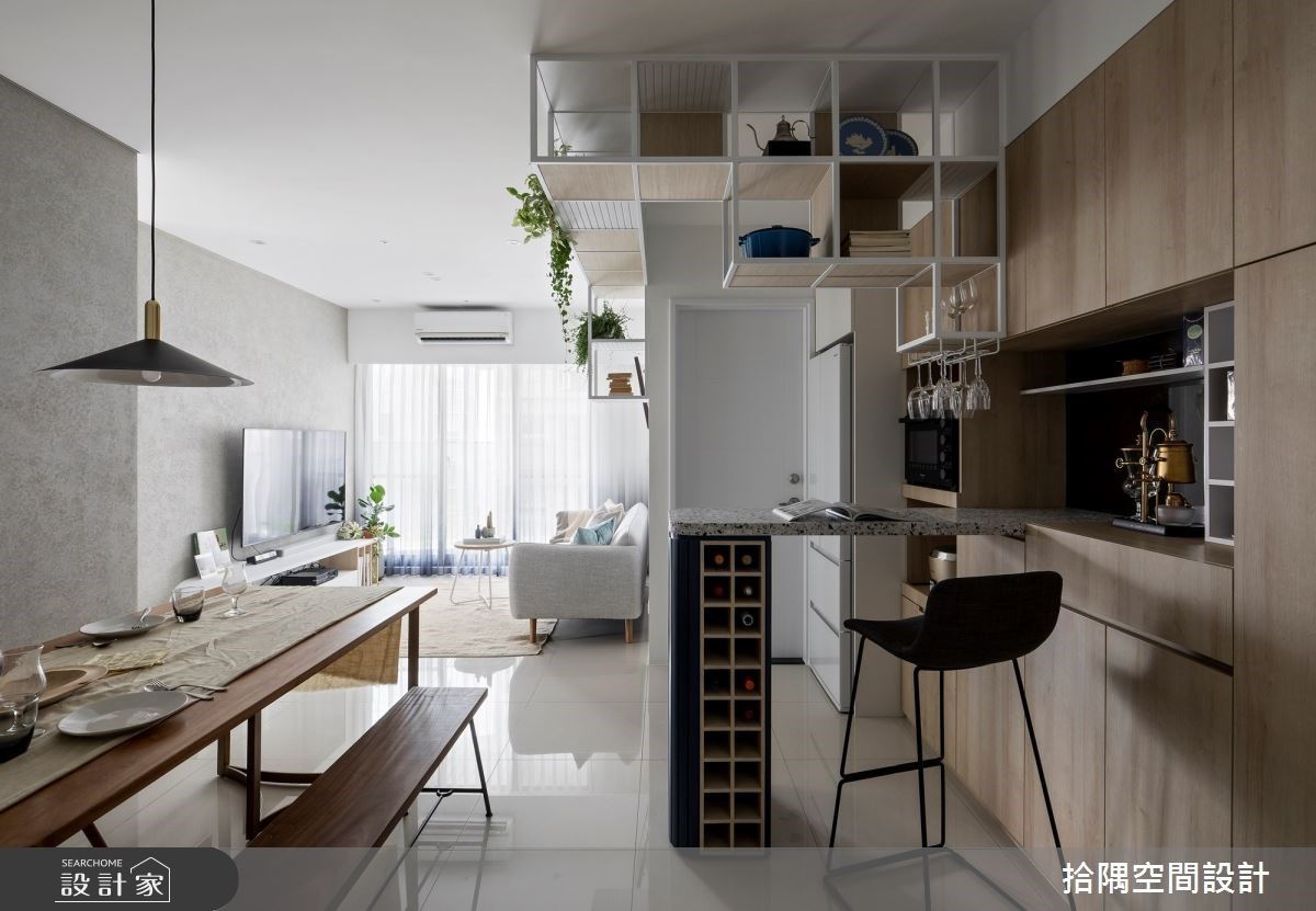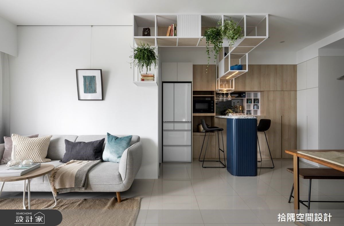 Project 03 梦想吧台入设计!品味得到北欧风小宅里的浓淡轻重 当孩子们都大了之後,该是回归享受夫妻俩独处空间的时候了吧!22 坪住宅保留原始格局不动,仅藉由重新布局在空间内打造女屋主梦寐以求的迷你吧台,在父母身份之外,重拾自己与伴侣的理想生活。在「聚集」与「分散」的设计概念中,公领域的收纳柜沿着空间结构集中於玄关与中岛吧台一侧,利用白色与原木在直角交会处做出机能分类。整合餐柜、电器柜与吊架设计,水磨石吧台台面由组合柜体延伸出来;黛蓝色包覆的柱角在内侧打造成简单的红酒储藏格。天花板订制铁件吊柜一路由迷你吧台连接到客厅上方,跨越场域的设计分散收纳集中的拥挤性,在立体空间创造丰富的视觉变化。