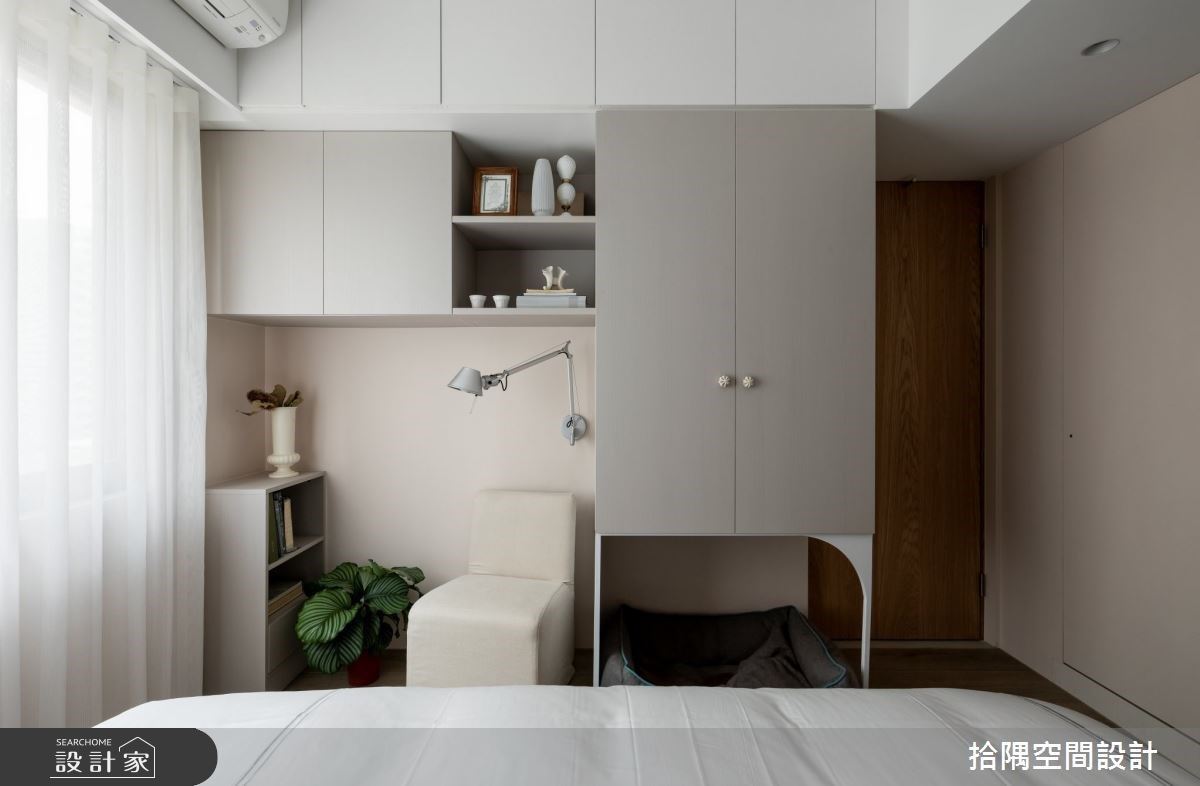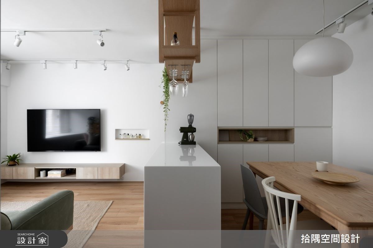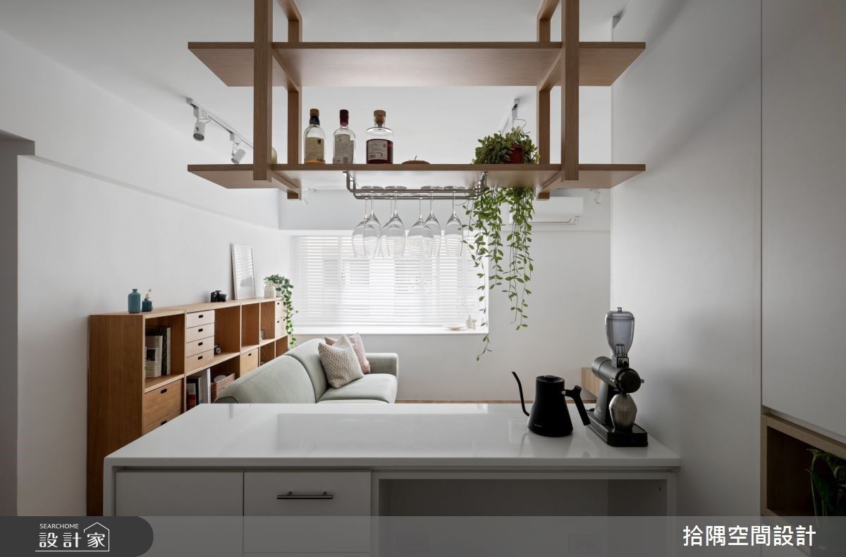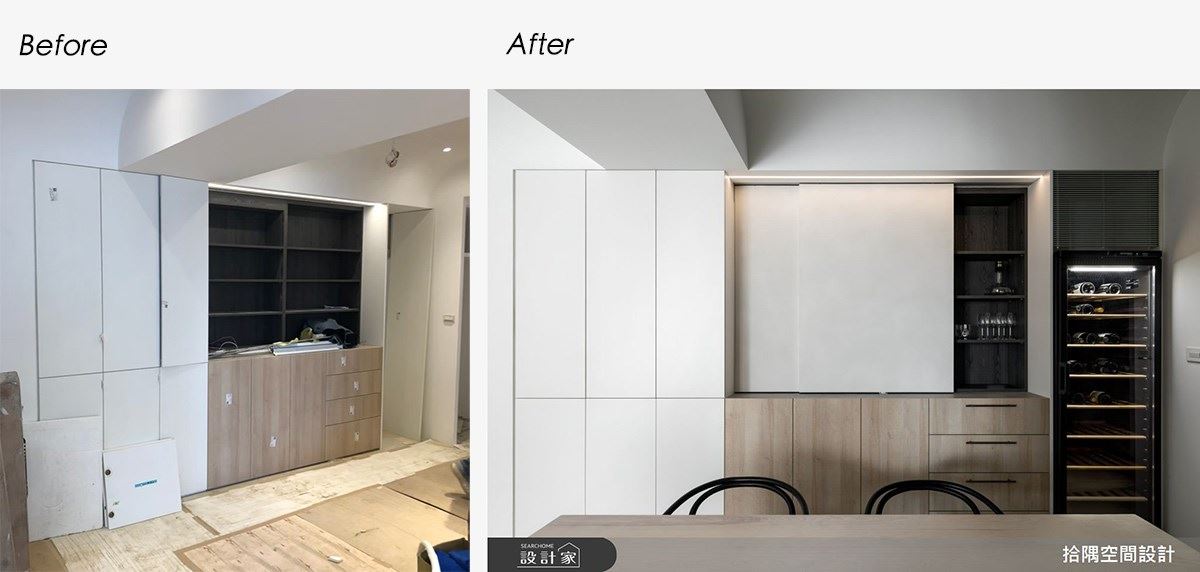 Point 02 老屋原屋况问题 V.S. 基础工程修复 屋主再次找拾隅空间设计帮忙翻新屋龄 30 几年的老国宅,老建筑在还没包天花板时屋高就只有 2 米 4 ,加上位於顶层,窗边有些漏水问题必须处理。面对低矮屋高,设计师将墙面与天花的老就管线全数拆除後换新,保留公共区域的原始高度;卧室与卫浴则局部包天花板来藏管线与暖风机,最大限度保持垂直高度。旧铝窗全数更换成气密窗并补强基层防水,精准修整老屋问题,完善整个屋内架构。