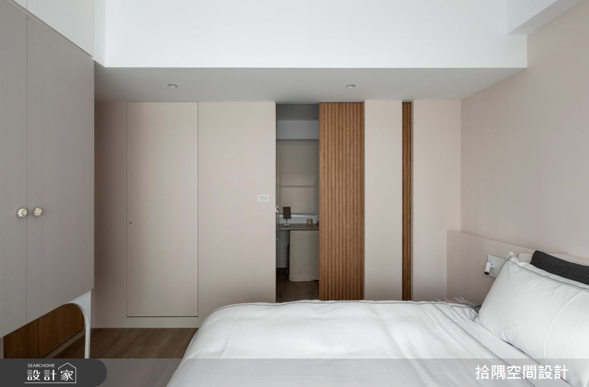 Point 03 缩小私领域放大公领域,全套卫浴搬迁至主卧房 面对老屋格局不慎理想时未必要全部砍掉重练,而是可以透过微调格局来达到公司领域的平衡。由於设计师时常会有亲友来家里聚会,在保留原始三房下尽可能放大客厅与餐厅区域,并增加一间客房空间。除了上述中缩小卧室来放大餐厨空间外,比较浩大的翻新工程在於要将一间全套卫浴挪动到主卧房内。由於大楼粪管和水管都是固定位置,因此要更改厨房或浴室时都必须将管线绕道或延伸,会耗费较高的基础工程费用外,管线变长或有转角也会影响水流力道,若有此类翻新需求要特别注意。