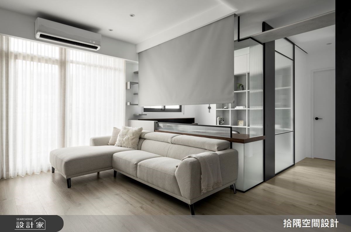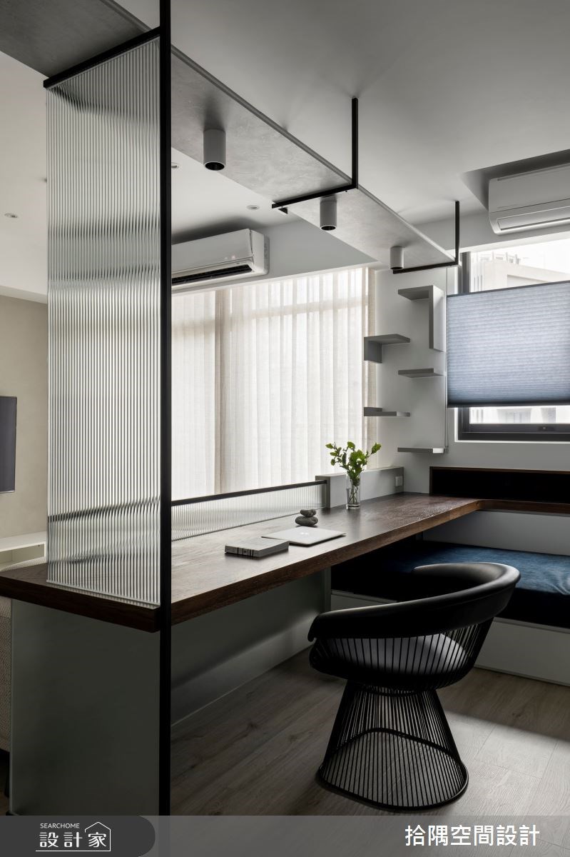除此之外,为了增加公领域的采光和穿透感,透过铁件和长虹玻璃取代实体隔间墙,串起客厅和书房间的开阔视野。书房内部加入大面的收纳柜体和卧榻设计,当需要专注的阅读或休憩时,则可拉下书桌上方的帘幕,便能拥有独立的私人空间。 小编的最爱 虽然整体坪数不大,却拥有令人羡慕的宽敞餐厨空间,设计师将餐厨空间整合,赋予流畅自由的动线规划,更在原有厨具外延伸出中岛区和整面备餐柜,完美打造舒适齐备的厨房机能。