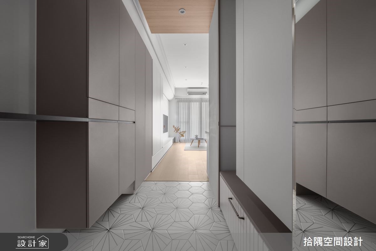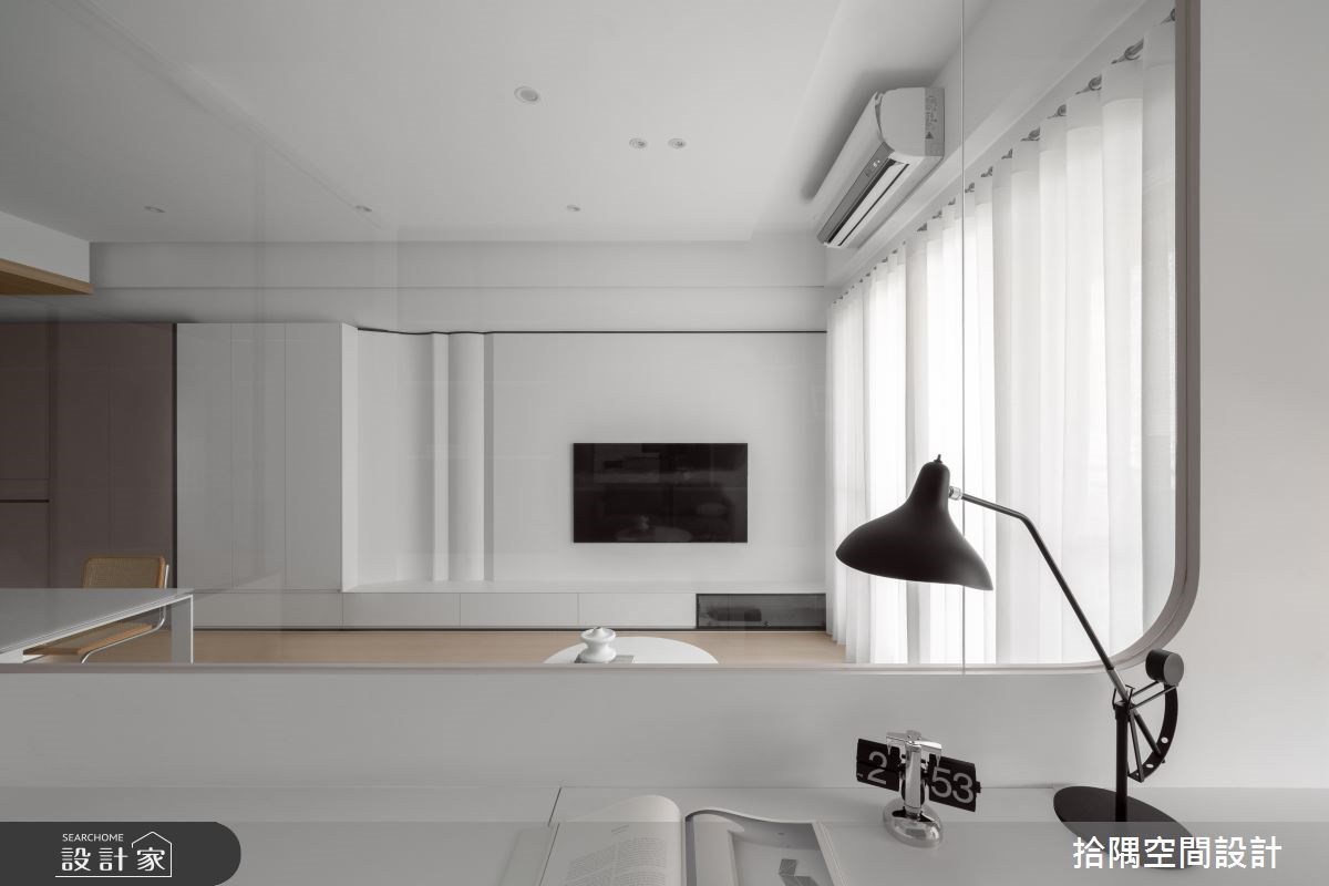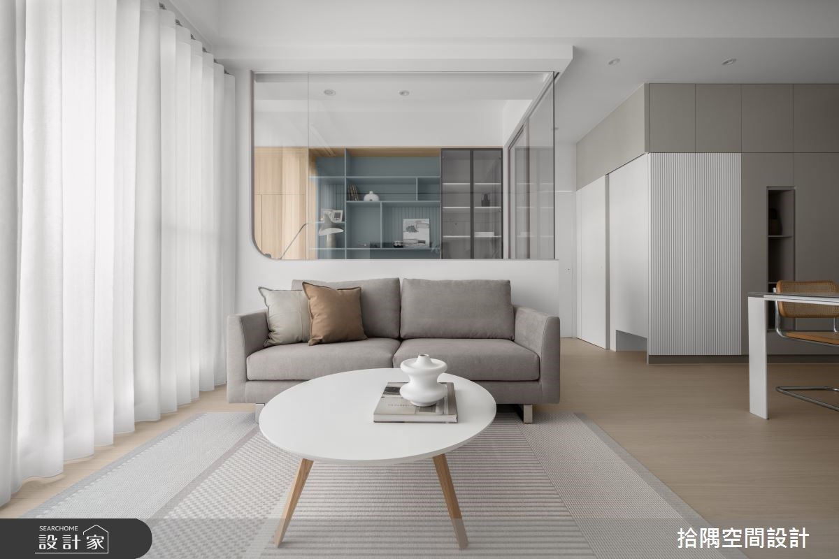 不但拥有相当齐备的机能性,室内亦漫延大面积纯白和浅木色,让 25 坪的北欧单身宅,洋溢着舒适而迷人的居家氛围,客厅後方的独立书房特别选用了清透的玻璃材质,呈现轻盈纯粹的无重力生活感,回到家就能在舒适的光度下,完全放松身心。 重视生活美学的屋主,期待在收纳机能的赋予下,也能展现视觉美感。玄关区铺设时尚六角花砖,两侧融合造型俐落的收纳柜体,兼具实用和美学质感。另一方面,连续的柜体由玄关延伸至公领域电视墙,设计师透过曲线元素和纯白色调的使用,以及温润的浅木色地板材质,自然地划分领域范畴。 厨房区卸除了局部的墙面,与公领域形成适度的开放关系,厨房外部透过中岛的连结,提升收纳和备餐等机能性。在另一侧的独立书房结合收纳展示和卧榻机能,并利用穿透的视野,平衡了厨房收纳和实墙转角的沉重感,也具有放大空间的视觉效果,而浅灰蓝色的格柜色彩更成为公领域画面的质感亮点。 主卧室为双动线设计,在主动线之外,也可以连结书房区,并在床边规划展示区和收纳机能,同时也善用转角区规划一日衣柜。床头背墙以浅灰蓝色为主题,融入典雅的鱼骨纹,也利用框设手法将床头的梁柱结构,转化为舒适的睡眠区包覆。 小编的最爱 玄关区加入一道可完全收阖的雾面玻璃隔屏,在不影响空间光线的条件下,可视需求划分出独立的玄关场域,入门时也能稍微阻挡直视客厅的视线。