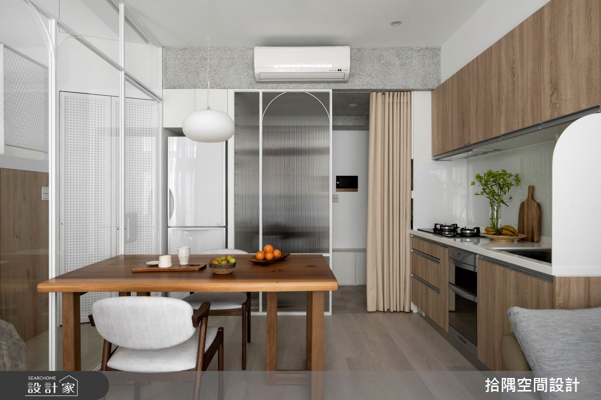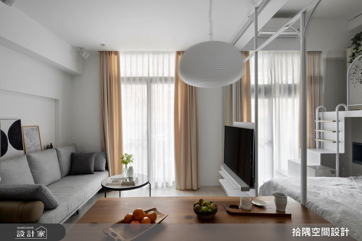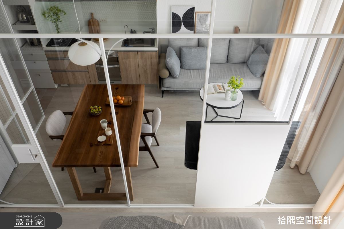 现代城市生活中,小坪数的住宅已经成为普遍现象,在有限的空间内,如何实现机能和坪效的最大化,是每个设计师都需要思考的问题。当平面空间趋於狭小,有效利用垂直高度,让生活空间向上生长,便可以实现最大化使用空间的设计方案。 小坪数的住宅中,善用穿透式材质可以有效让采光流泻於每个角落,使整个空间感得到延伸。因此,整体空间多用长虹玻璃、白色铁件和玻璃等穿透式的材质,不仅让室内看起来更宽敞明亮,更可为玄关阻挡穿堂煞,达到隔断但保有明亮采光的目的。格局规划上,将靠窗的一字型厨房位移至餐桌旁,将光线最好之处留给客厅,而餐厨区域的动线也更加顺畅。 通过玻璃隔屏将公私领域区隔,可通过放下拉帘的方式,达到确保隐私的目的。私领域中利用垂直高度,规划出上层可以直立行走的书墙,下方则为收纳区域,达到有效利用空间的每一分寸的目的。私领域内活用冲孔板,将畸零角落规划为浴室,达到遮掩却能分享光线的目的。 小编的最爱 北欧风的小坪数住宅的设计方案,藉由设计师巧妙的规划,将有限的空间,发挥最大化功能的利用,同时还可以创造出开放自由的氛围。