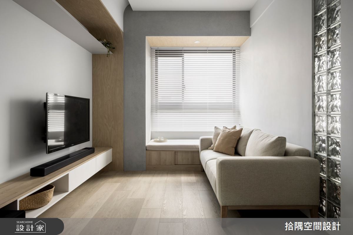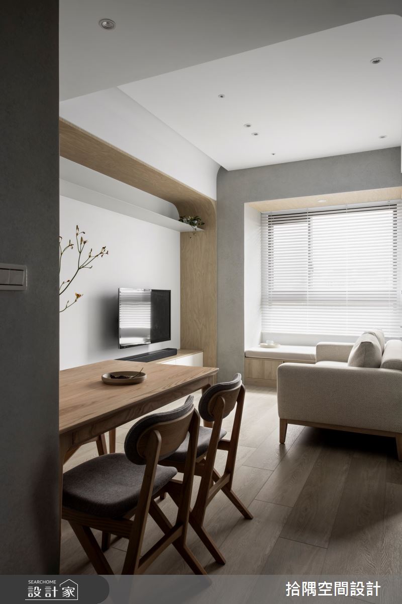 坐落於新北市三重区的18坪预售屋,居住成员为两位大人,拾隅空间设计先是将格局规划为齐备的3房2厅,透过坪效最大化、整合收纳等精湛的设计巧思,实现北欧小宅拥有完整餐厨空间的高机能梦想,快跟着小编一起看下去吧! 迈入室中,空间以低彩度灰色为主调,搭佐温润的超耐磨木地板,适时留有居家温度;格局规划上,以开放式设计为主轴,敞开客餐厨三大空间,延伸开阔敞亮的视觉飨宴,善用居宅纵深发展流畅的客餐厅行走轨迹,立面处以米灰色调的系统柜板材,巧妙整合备餐台及电视柜收纳,转角处更预留了镂空造型,铺贴石纹肌理作为精致的展示台面,同时规划夫妻俩的养殖鱼缸放置空间,让家处处皆为端景;为了将临窗处的充沛采光最大化,以木作包裹形塑视觉框景,下方增设休憩卧榻,化身午後放松的小角落;烹饪厨房改以弹性隔间结合穿透式材质,打造多元的使用方式,更将充沛日光导入到室内每一隅。