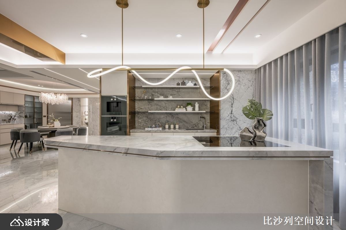 198 平米毛胚屋订制两房格局!造型中岛吧台与六星级主卧,写下静奢豪宅新篇章