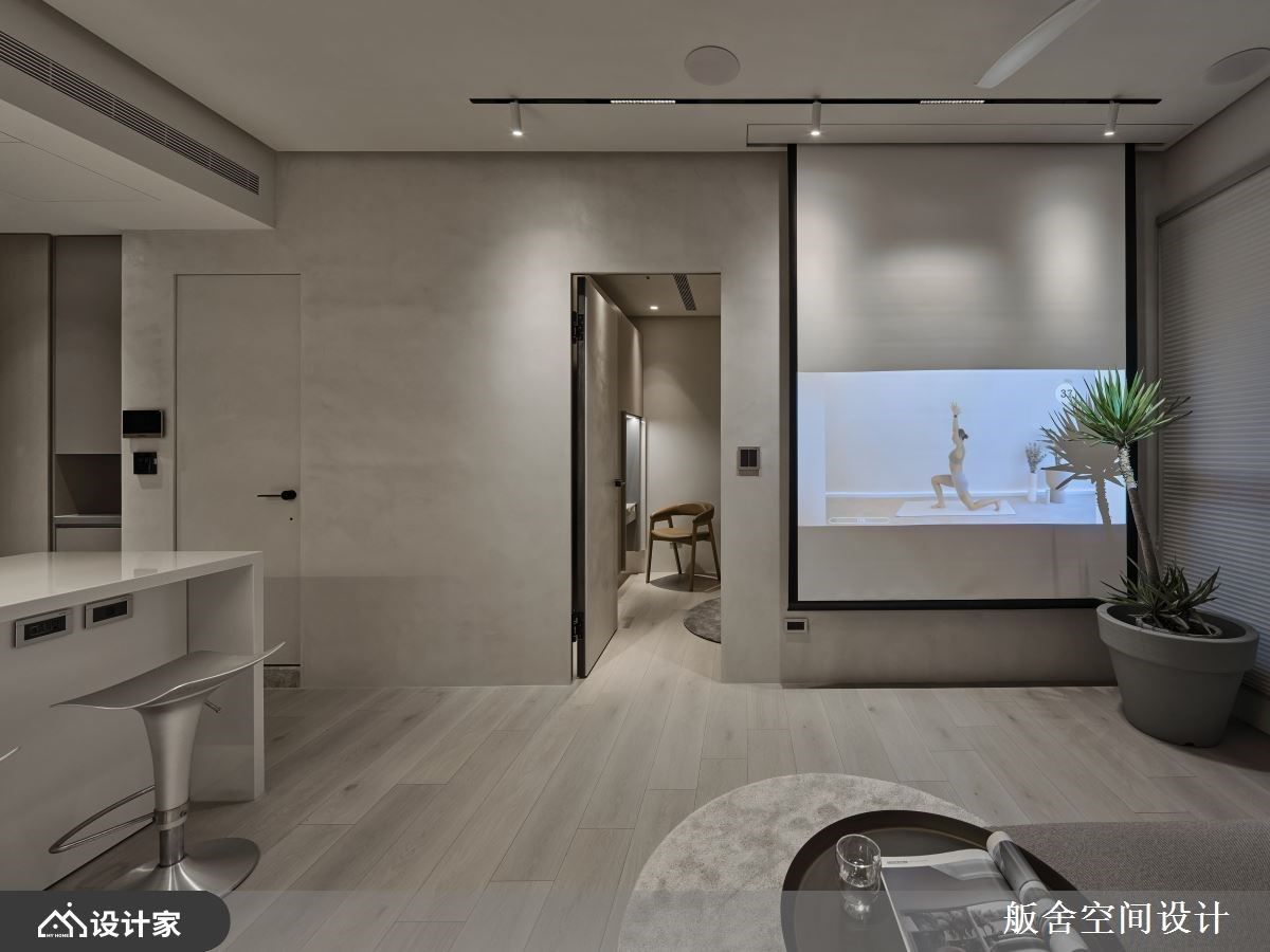 在现代住宅设计中,突破既有框架和文化限制是打造理想居家环境的重要一环。56.1平米的新成屋,屋主一家长年旅居美国,因疫情之故,需要一处偶尔回到台湾休息落脚之处,设计师深入了解屋主在美国的生活习惯,并结合台湾的居住环境,创造出跳脱传统美式风格的空间设计,展示出居家空间的无限可能。 在玄关处设置了落尘区和收纳柜,方便放置鞋子和行李箱。而进入空间后,为了营造开阔舒适的空间感,设计师拆除了厨房与多功能室的隔墙,餐厨区与公共空间因此串连起来;中岛的设置不仅增加了料理和用餐的互动性,也成为空间的视觉焦点,保有小空间的开阔感与使用弹性。同时藉由大面积的落地窗将丰沛的阳光引入室内,让空间与自然有更多的互动。设计师观察美国家庭的规划,家中的中心并非以围绕着电视墙为要角,因此以投影布幕取代电视墙,使客厅的使用方式更为弹性且多元,而立面则使用特殊漆,在创造留白且简洁的视觉效果同时,不失细节及质感。沙发后方则依据屋主的需求规划为阅读区,同时也能兼做照顾孩子过夜的区域,不特意定义使用方式,为生活留有更多弹性。