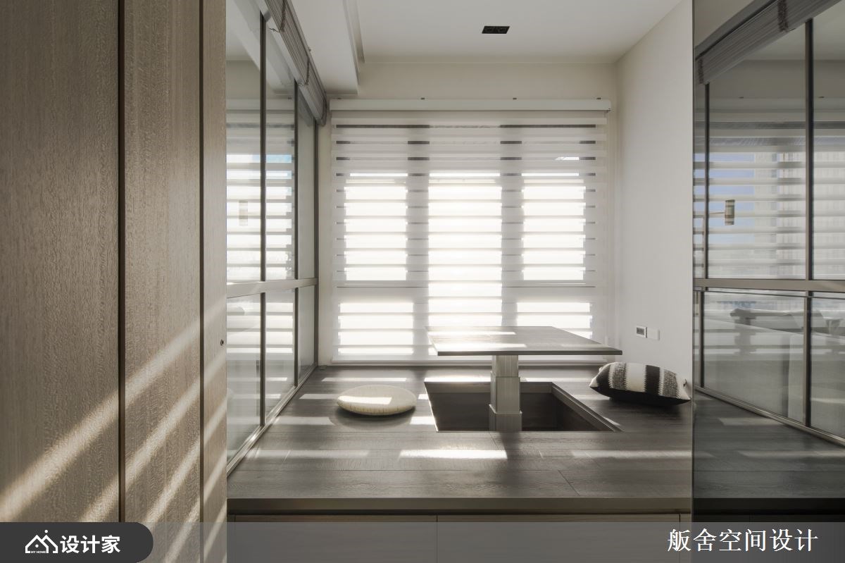 客厅后方的多功能室,以透明玻璃取代制式隔间,辅以窗帘确保隐私,使用弹性,可一秒变身客房,架高地板强化收纳,结合自动升降桌,可以阅读、沏茶、写功课等,满足理想生活的模样。