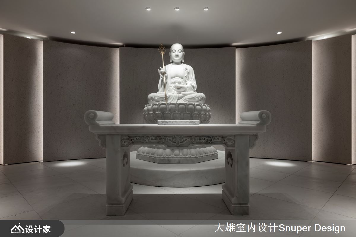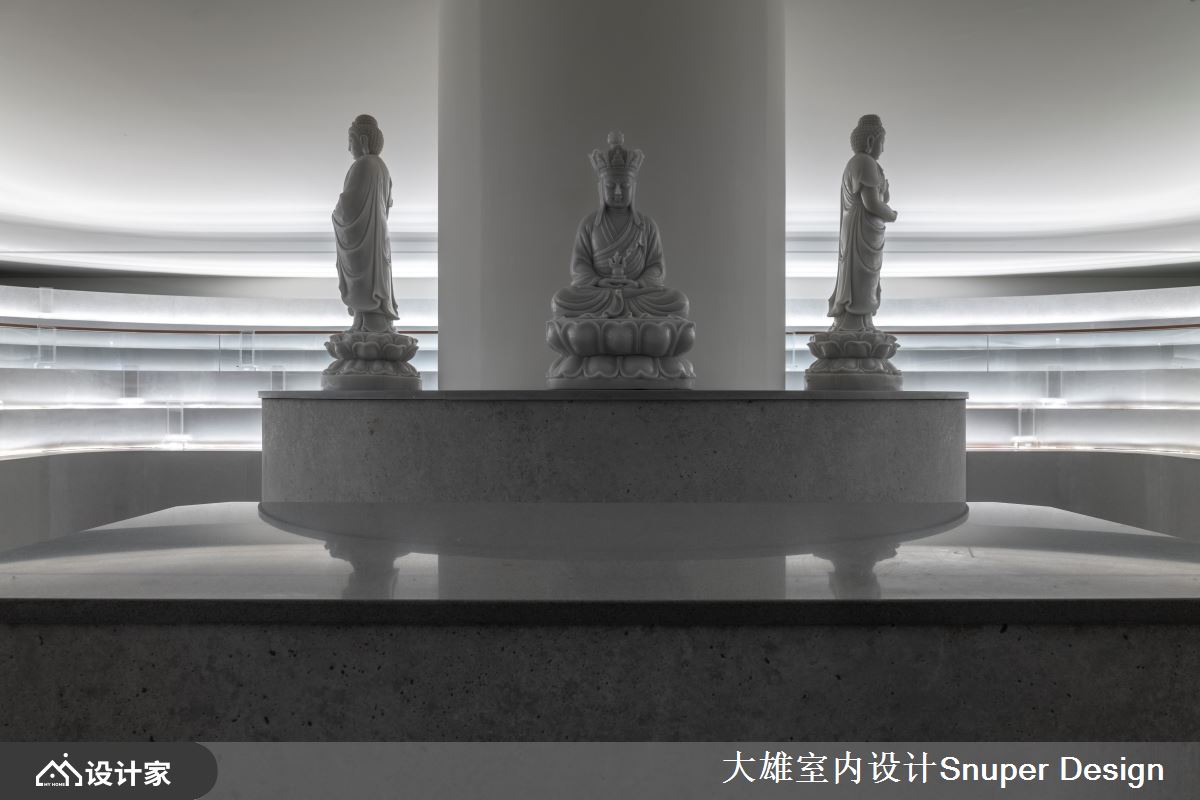 设计师以光影为设计的核心,使时间彷佛凝滞停驻,搭衬着沉静内敛的材质色彩,托付着对於逝者的怀念追思,创造得以触动心灵深处的生命礼仪空间。