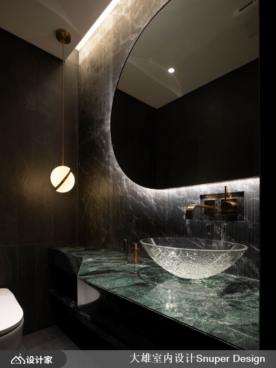 在私领域的规划部分,主卧透过更衣间、私人起居,直至睡眠区和卫浴的动线递进,带入优雅舒适的机能性,并赋予休憩的私密性。次卧则以弧形和金属的细节为呼应,引注不同的彩度色调,实现居住者的理想生活情境。